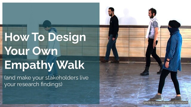 In this series of stories I'll show you a method that I believe should be in every research team's field kit when it comes time to story-telling and bringing your findings back into the boardroom. Come see how you can craft your own empathy walk from your research findings, and help your audience really connect with the people whose stories you are trying to tell, and the problems you are trying to make visible.