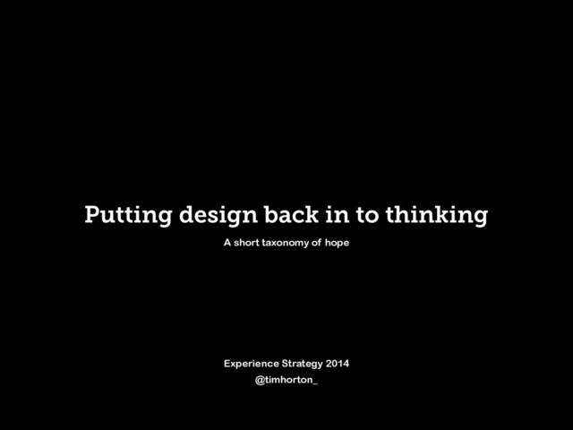 In this presentation Tim offers a short taxonomy of hope, with a skim across work in three states that may just put design back into thinking, including case studies in South Australia, and emerging work in Queensland and NSW.