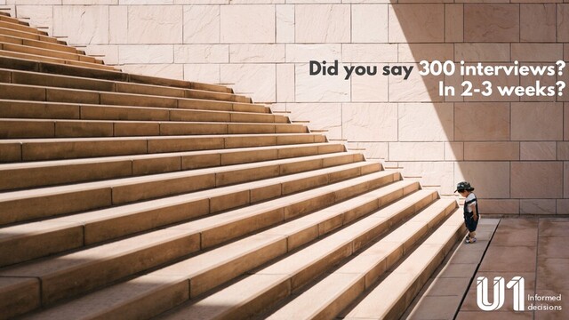 false positive • out of time, right path • out of time, wrong path • gave up • tech issue or bug • other BENCHMARKING DATA • brand attitudes • time on task • success/failure • Reason for failure Warm up: In task: Success: Failure reasons: • perceived ease • confidence • perceived relevance Post task: www.u1group.com