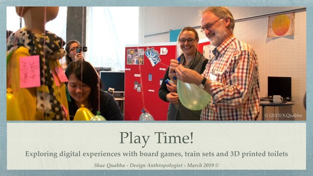 Through Practice” (2011) and B. Martin et.al. “Universal Methods Of Design” (2012) Academic authors in this field: E. Brandt; T. Binder; S. Bødker, J. Halse; P. Ehn; B. Clark; A. Dunne; A. Lucero; E. Sanders; P. Stappers, S. Ladner. Numerous papers and publications from each. Find out about Lego® Serious Play® at https://www.lego.com/en-us/seriousplay Participatory Innovation Seek out the work of J. Buur, H. Larson, W. Gunn, J. Donovan, M. Ryöppy and others @ Syddansk University Design anthropology, design research & methods EPIC https://www.epicpeople.org/ View past conference papers, articles, and learning programmes Twig and Fish N-Credible Model from M. Kothandaraman & Z. Ludin, http://www.twigandfish.com/ Where I buy my play tools Education suppliers: Edex, Kesko, Modern teaching aids, Clever Stuff Retailers: Big W, Kmart, Daiso, Etsy Say hello! https://www.linkedin.com/in/shaequabba/ Digital winners play!