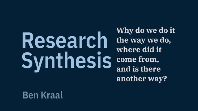 Research Synthesis Why do we do it the way we