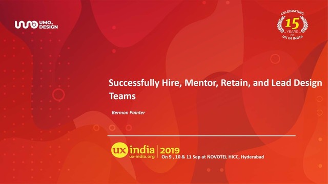 / #UXINDIA WORKSHOP: SUCCESSFULLY HIRE, MENTOR, RETAIN AND LEAD DESIGN TEAMS UX INDIA – HYDERABAD WORKSHOP: SUCCESSFULLY HIRE, MENTOR, RETAIN AND LEAD DESIGN TEAMS @BERMONPAINTER / #UXINDIA