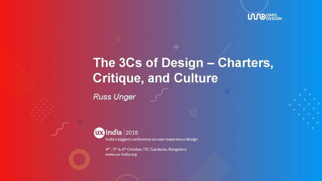 UXINDIA18 - The 3 Cs of Design – Charters, Critique, and Culture