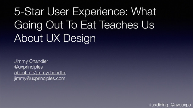 Most people have a few favorite restaurants, places to go when we want to be treated like a close friend or family member, enjoy the company we’re with, and eat well. For special occasions, or just for variety, sometimes we will try a new place to dine. These new experiences often delight, and it’s as if we’ve made a new friend, but other times we are turned off by the food or service, never to return. We'll explore how we can apply the key concepts from a great restaurant experience to the user experiences we design - and learn the lessons from those who fail to meet their customers' needs. We'll connect these ideas to what we know about how the human brain works and how our emotions impact our decision making, and discover what great restaurateurs and great designers do in common.