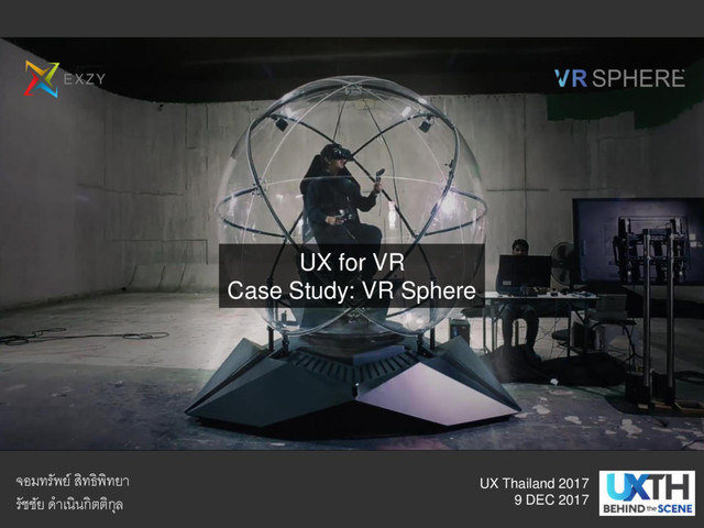 เครื่อง VR Sphere มองเผิน ๆ ก็คือเครื่องที่ออกแบบเพียงแต่ให้ดูสวยงาม แต่การออกแบบประสบการณ์ผู้ใช้สำหรับ VR Sphere มีหลากหลายส่วน ไม่ว่าจะเป็นส่วน mechanic ส่วน content ที่เห็นในแว่น ส่วนการออกแบบโครงสร้างของเครื่องล้วนแล้วแต่โฟกัสและให้ความสำคัญกับ user ทุก ๆ ขั้นตอน