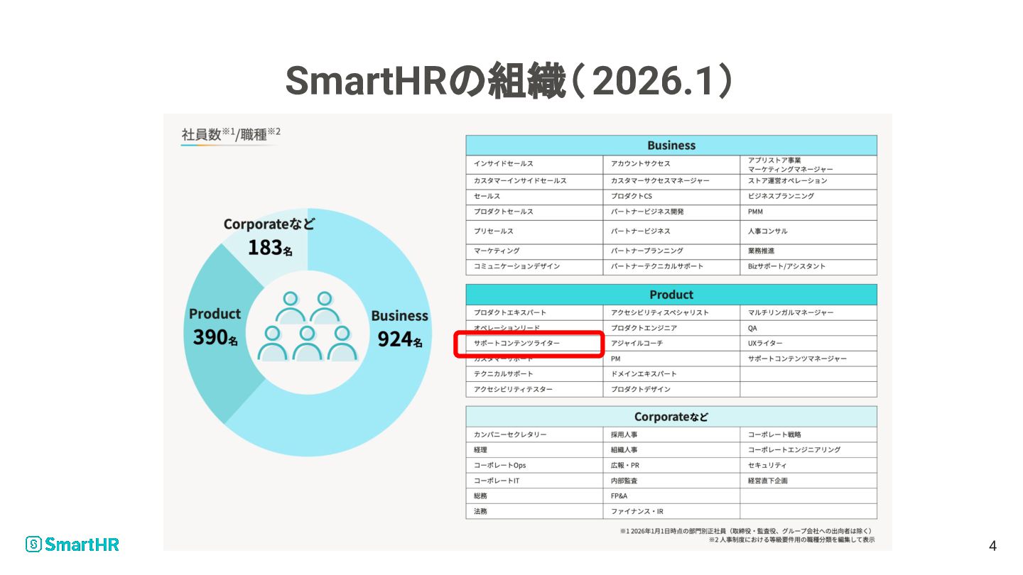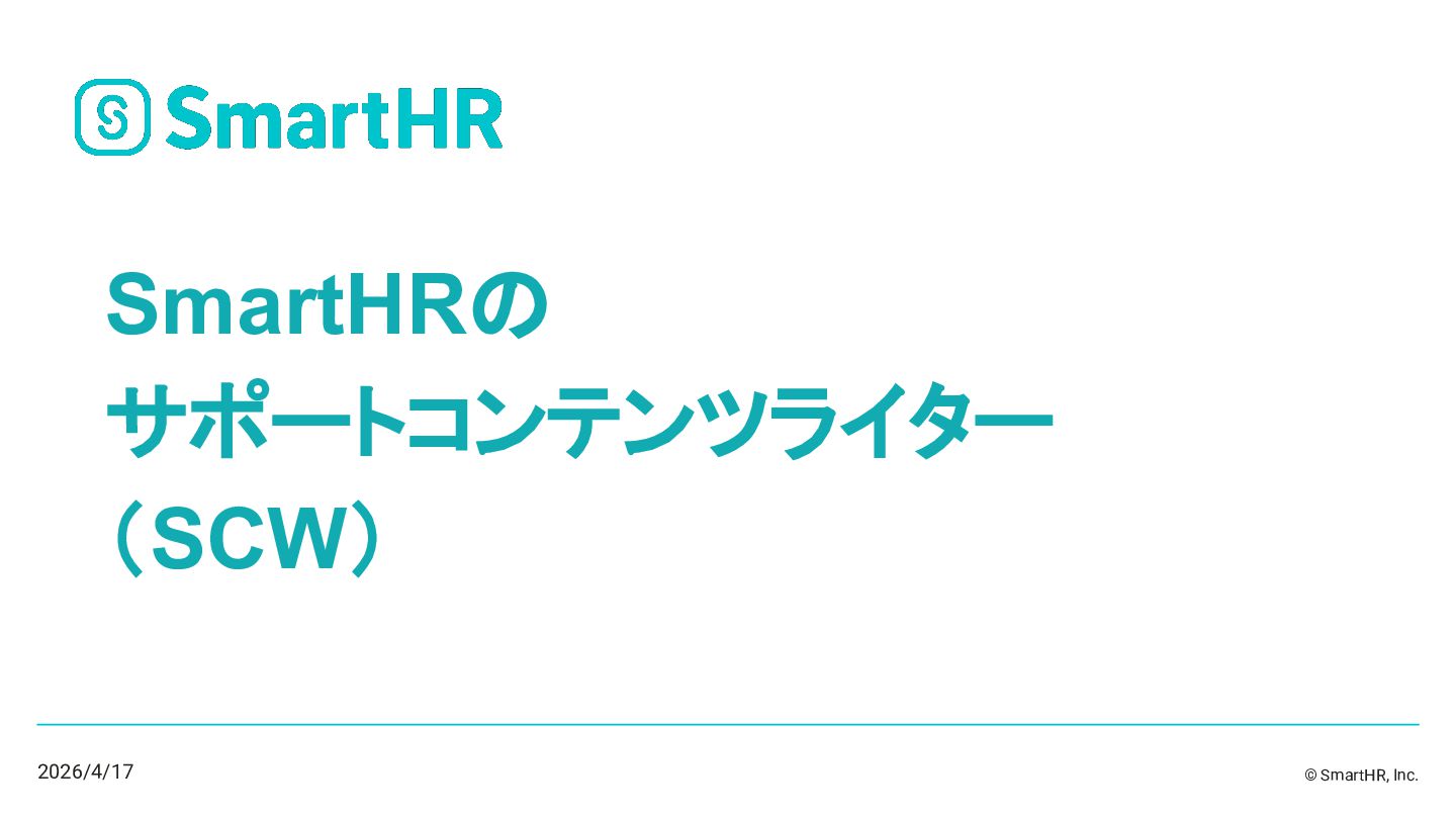 © SmartHR, Inc. SmartHRの サポートコンテンツライター (SCW) 2026/4/17