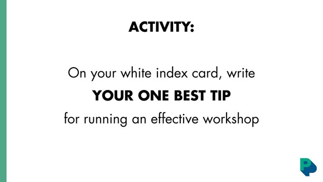 2. Be mindful of status 3. You can’t make people participate… …but they will if you use inclusive activities 4. Plan backwards 5. Pick up the phone! (do pre-interviews) 6. Don’t make people fly