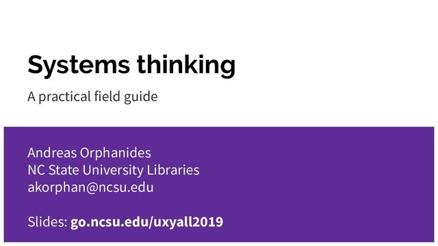 Systems thinking A practical field guide Andreas Orphanides NC State