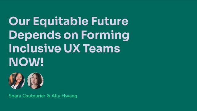 - Determine key learning objectives - Formulate hypotheses - Brainstorm concepts together to test with people - Identify a strong recruit to interview and learn from - Find communities to collaborate with and design for - And more... Our equitable future demands we... - Create inclusive environments where everyone can bring their whole selves to work - Serve the needs of a broader audience by bringing outsiders in consistently (and pay them!) - Hold each other accountable and bring your bias