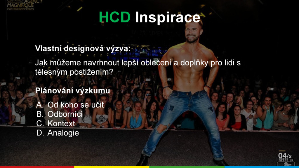 Vypněte Axure a představte si, že máte místo webové stránky vytvořit prototyp kalhot. Najednou už to není o digitálním wireframu, ale o lidech a materiálech, o způsobu jejich použití. Designérský tým se s vámi během své přednášky podělí o své zkušenosti. Od výzkumu, přes designování, až po tvorbu prototypů. Neopomenou ani všechny problémy, s nimiž se museli v průběhu projektu, se kterým se dostali až do akceleračního programu pro sociální podnikání Impact First, vypořádat.