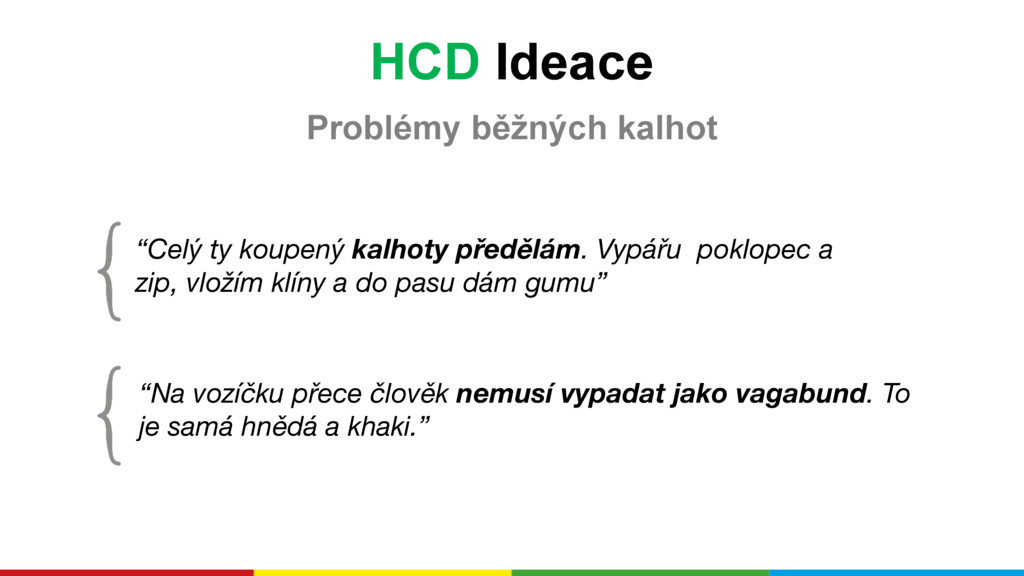 Co se stane, když se šest digitálních designérů zapíše do online kurzu Human Centered Design od společnosti Ideo.org? Vznikne unikátní projekt, který ani oni sami nečekali a navíc je přenese z online světa rovnou k fyzickým produktům. Sami si pro řešení vybrali velmi specifický problém: usnadnit vozíčkářům oblékání kalhot. Rozhodli se tedy navrhnout takové kalhoty, které by se oblékaly hendikepovaným pohodlněji.