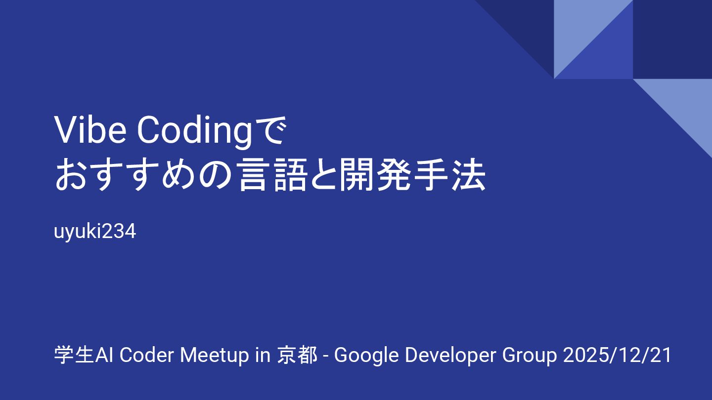 Vibe Codingで おすすめの言語と開発手法 uyuki234 学生AI Coder Meetup in 京都 -