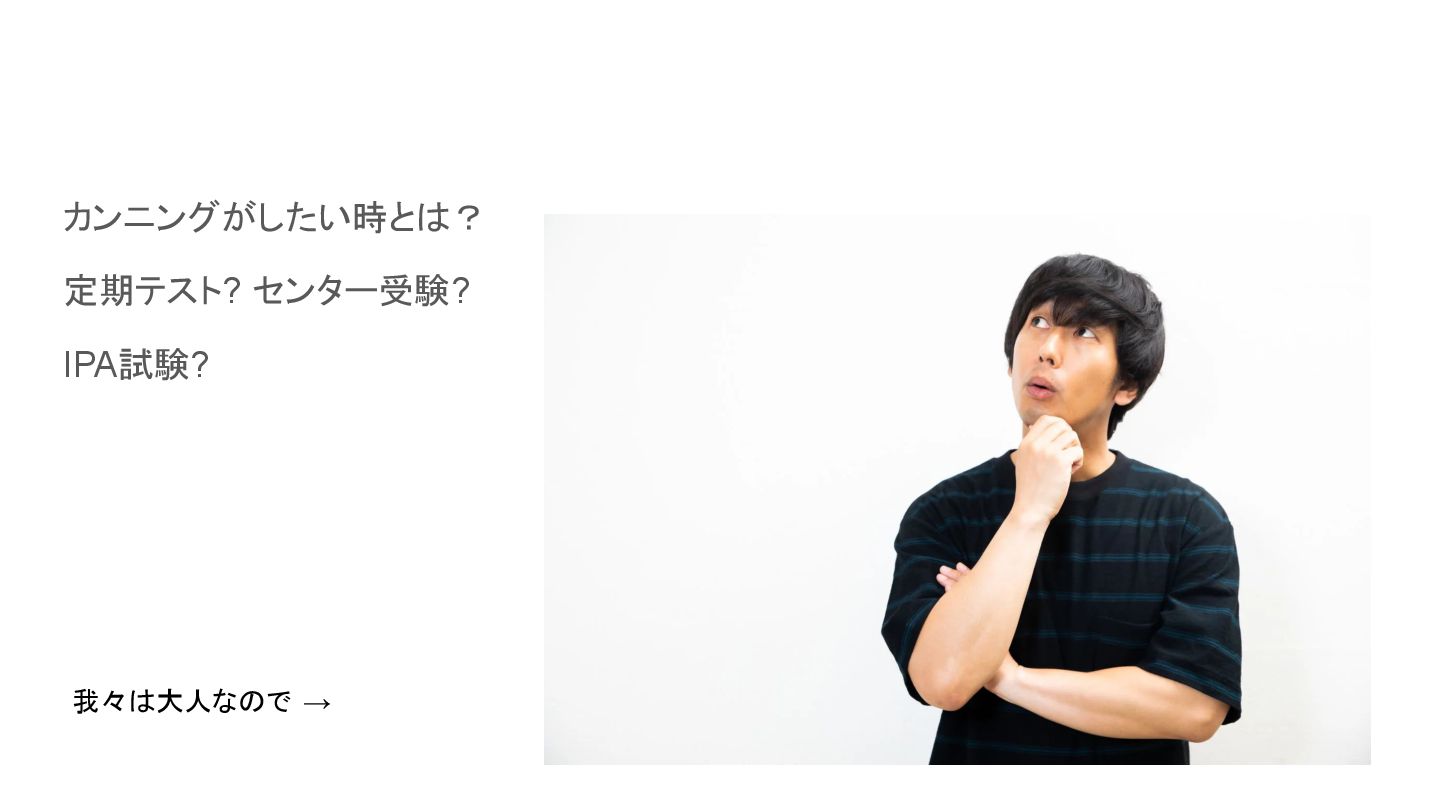 カンニングがしたい時とは? 定期テスト? センター受験? IPA試験? 我々は大人なので →
