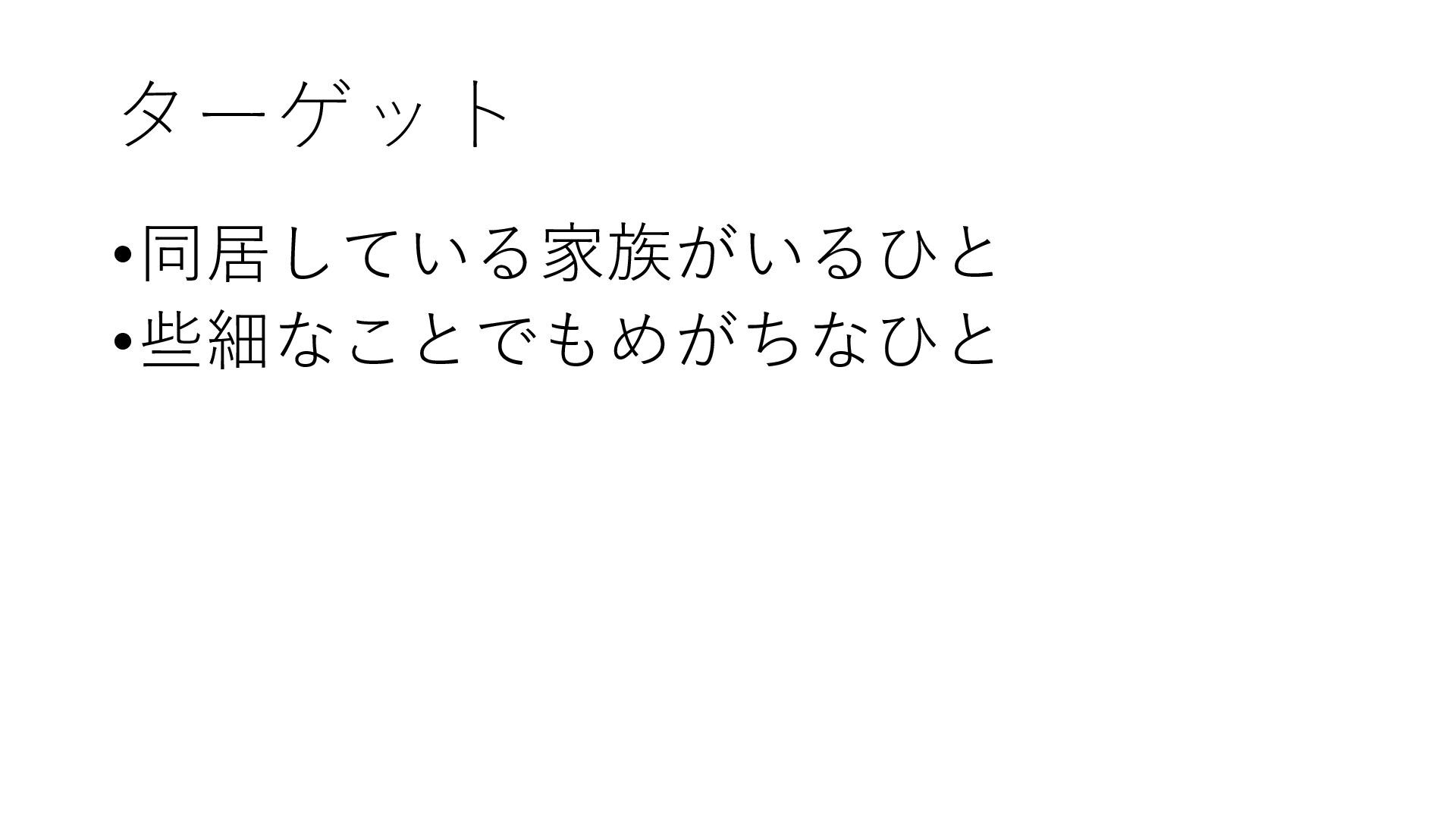 ターゲット •同居している家族がいるひと •些細なことでもめがちなひと
