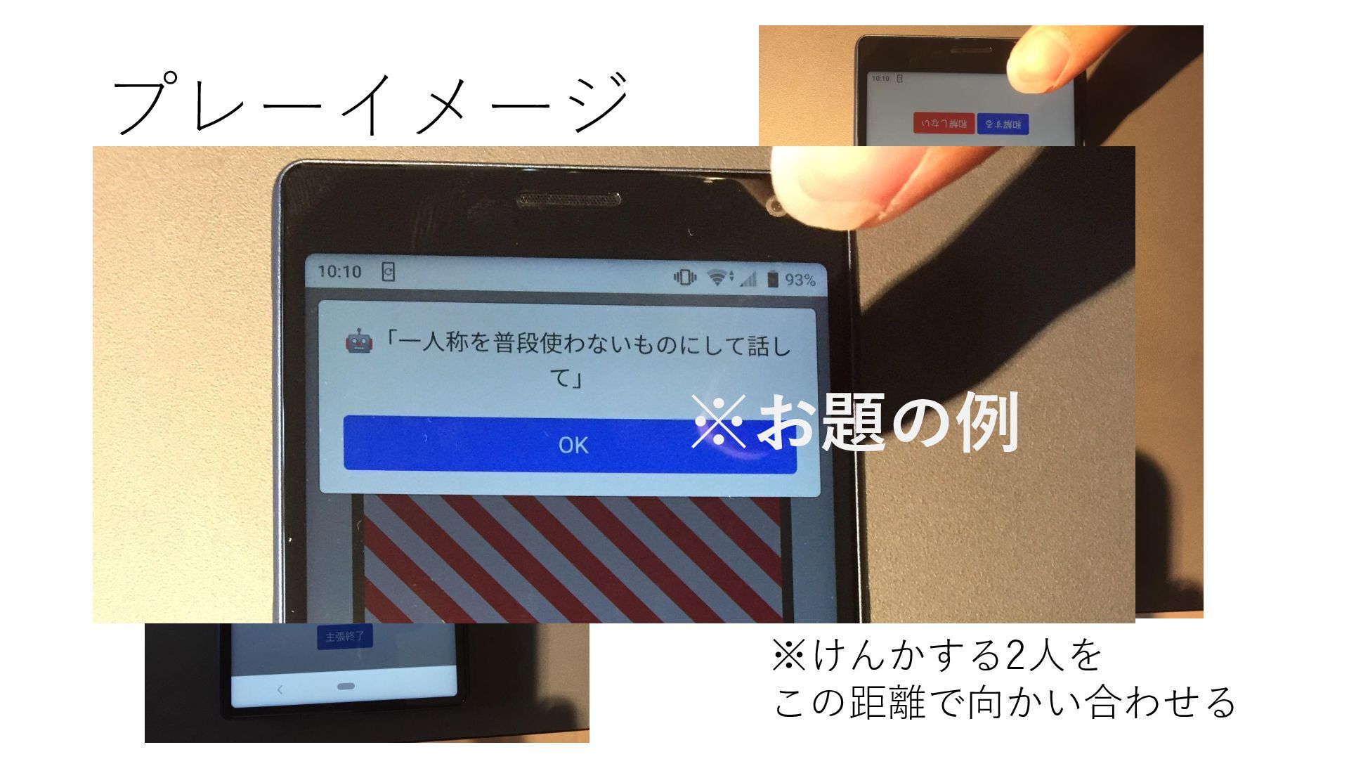 プレーイメージ ※けんかする2人を この距離で向かい合わせる ※お題の例