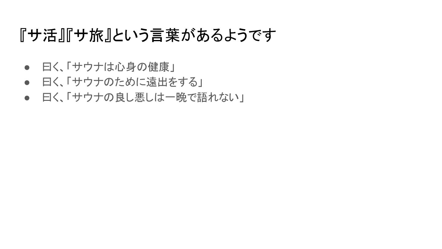 『サ活』『サ旅』という言葉があるようです • 曰く、「サウナは心身の健康」 • 曰く、「サウナのために遠出をする」 • 曰く、「サウナの良し悪しは一晩で語れない」