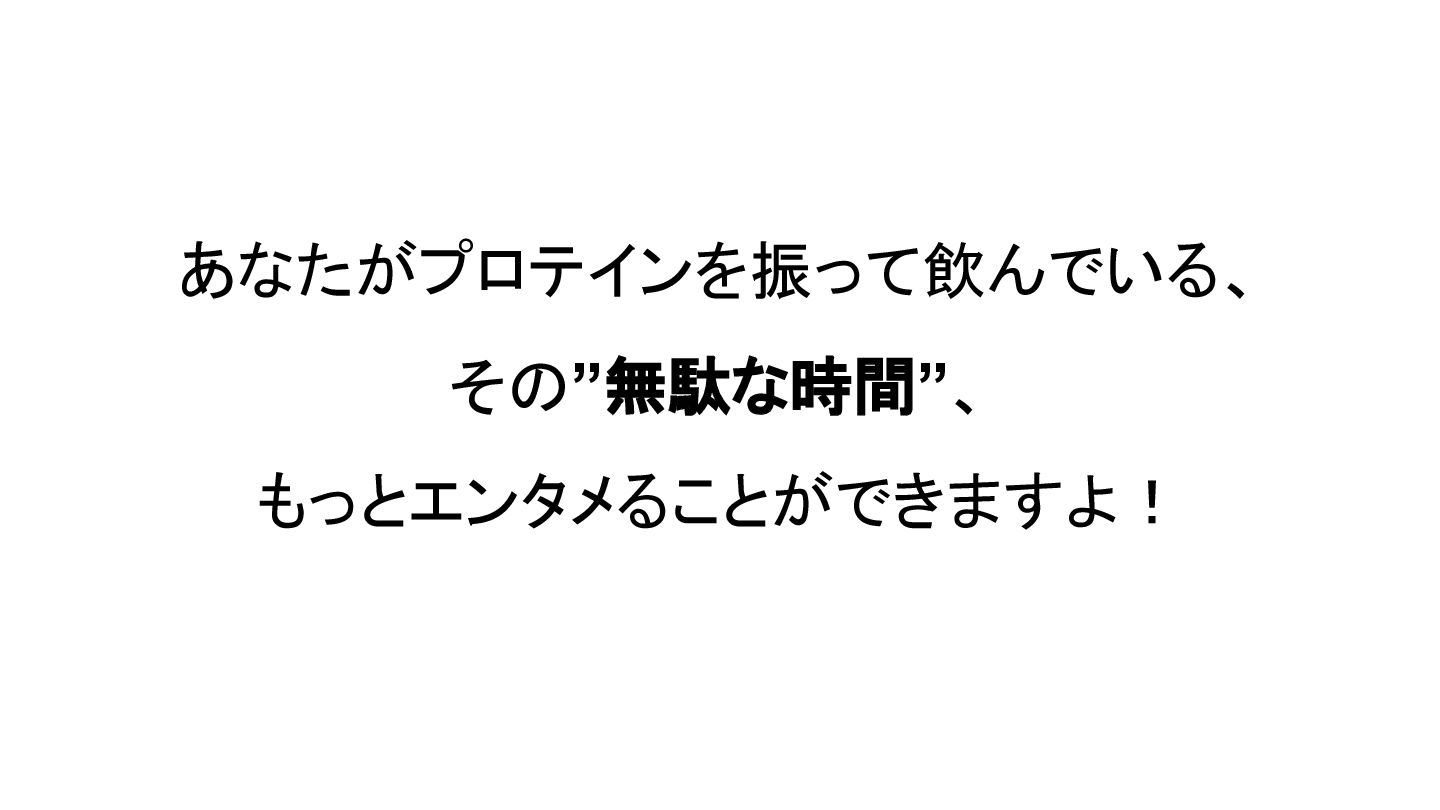 あなたがプロテインを振って飲んでいる、 その”無駄な時間”、 もっとエンタメることができますよ!