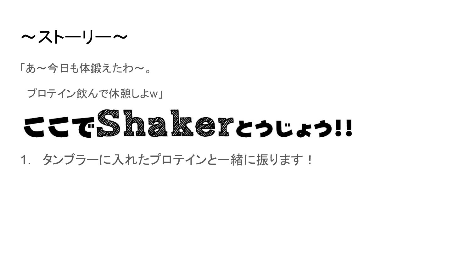 ~ストーリー~ 「あ~今日も体鍛えたわ~。 プロテイン飲んで休憩しよw」 1. タンブラーに入れたプロテインと一緒に振ります!