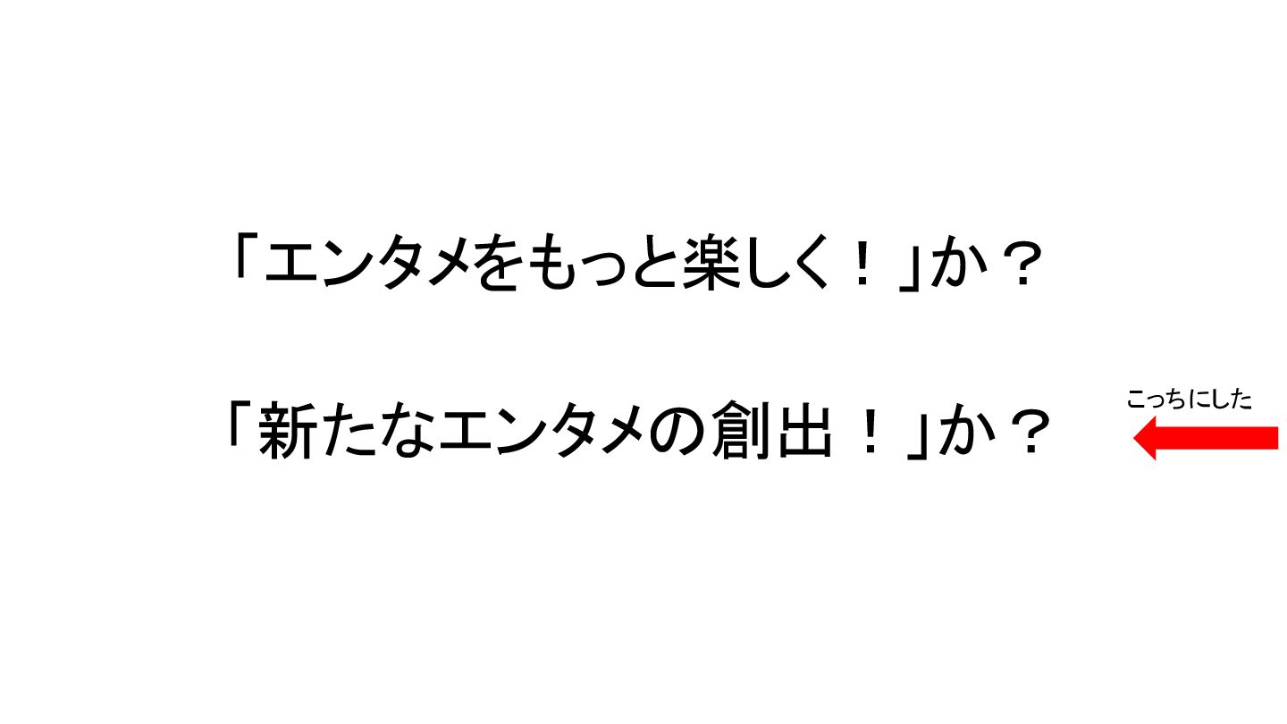 「エンタメをもっと楽しく!」か? 「新たなエンタメの創出!」か?