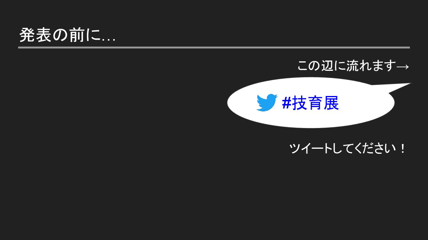 発表の前に… この辺に流れます→ ツイートしてください! #技育展