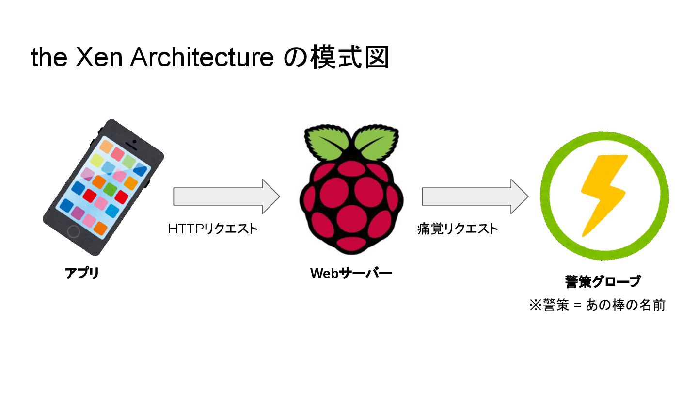 the Xen Architecture の模式図 HTTPリクエスト アプリ 痛覚リクエスト Webサーバー 警策グローブ ※警策