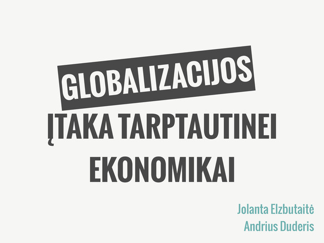 inovacijas, suteikia galimybių plėsti rinkas ir dalyvauti žinių bei patirties mainuose, plėsti ir ugdyti gamybą bei kelti gerovę. Tačiau globalizacija yra nevaldoma ir mažai reguliuojama, jos subjektai - didžiosios tarptautinės korporacijos, jos vienintelė varomoji jėga - ekonominis racionalumas ir pelningumas.