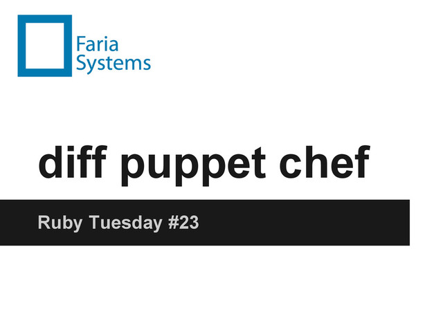 its own DSL • You define the desired states (What does it look like) • Puppet will do the rest (How should it be done) • Used by Wikimedia, Rackspace, Zynga, Github, Google, Oracle...