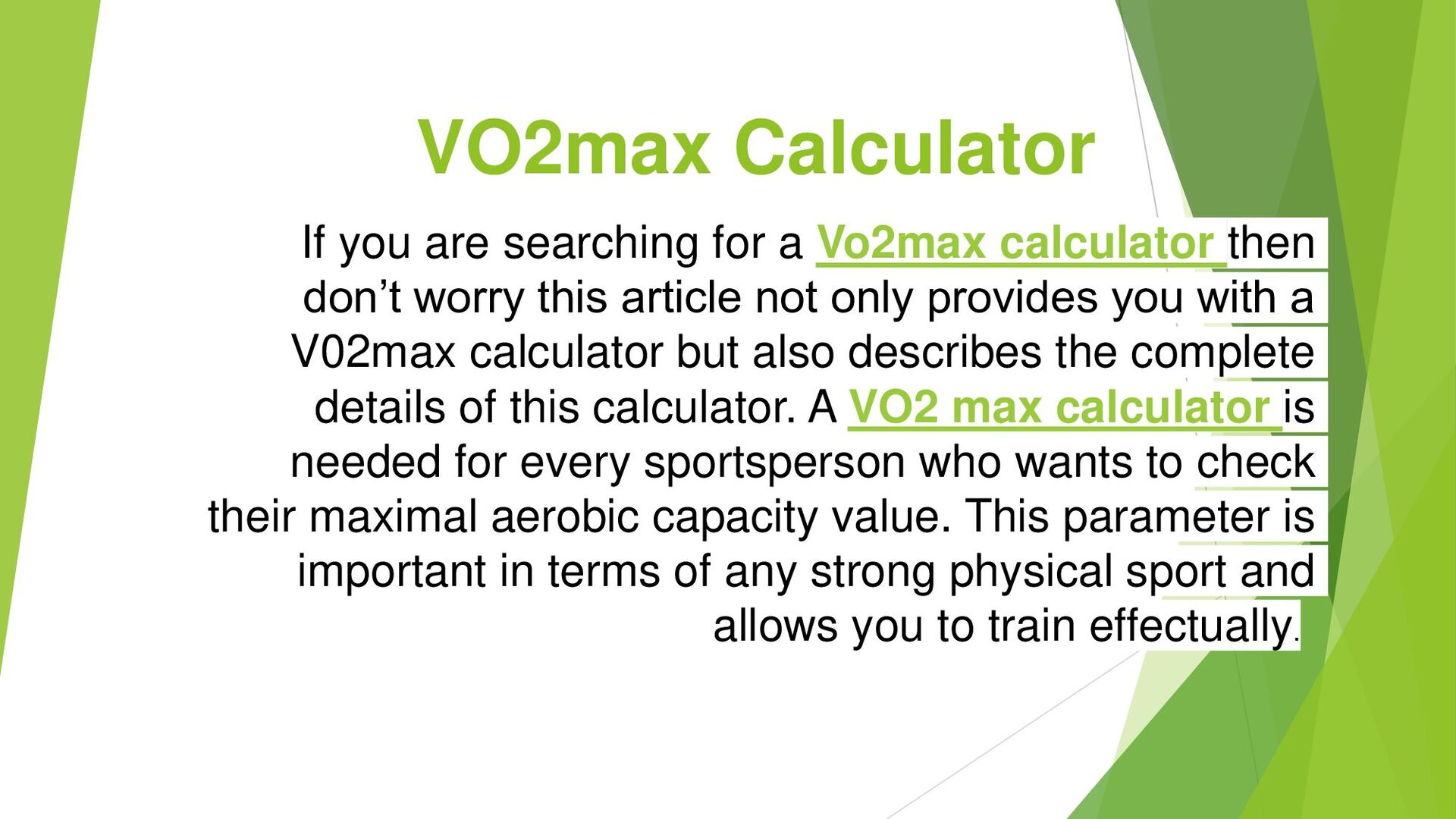 If you are searching for a Vo2max calculator then don’t worry this article not only provides you with a V02max calculator but also describes the complete details of this calculator. A VO2 max calculator is needed for every sportsperson who wants to check their maximal aerobic capacity value. This parameter is important in terms of any strong physical sport and allows you to train effectually. https://vo2maxpro.com/