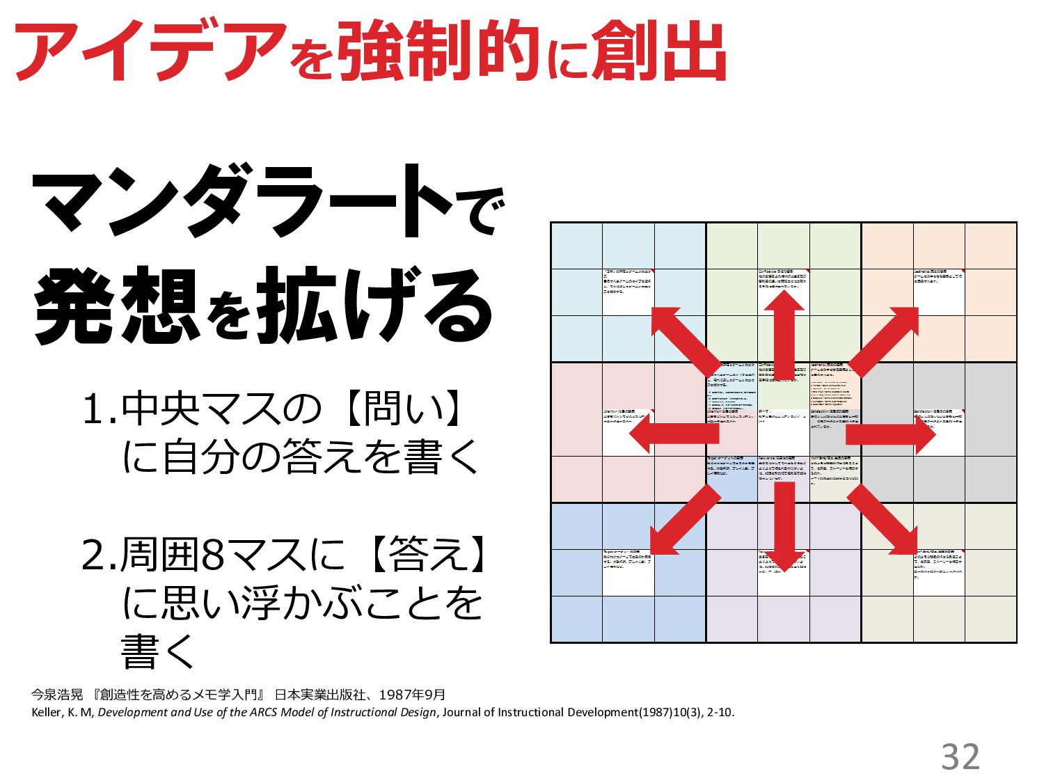 『創造性を高めるメモ学入門』 日本実業出版社、1987年9月 Keller, K. M, Development and Use of the ARCS Model of Instructional Design, Journal of Instructional Development(1987)10(3), 2-10.