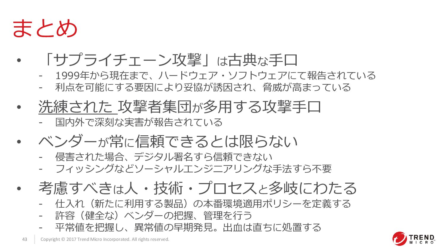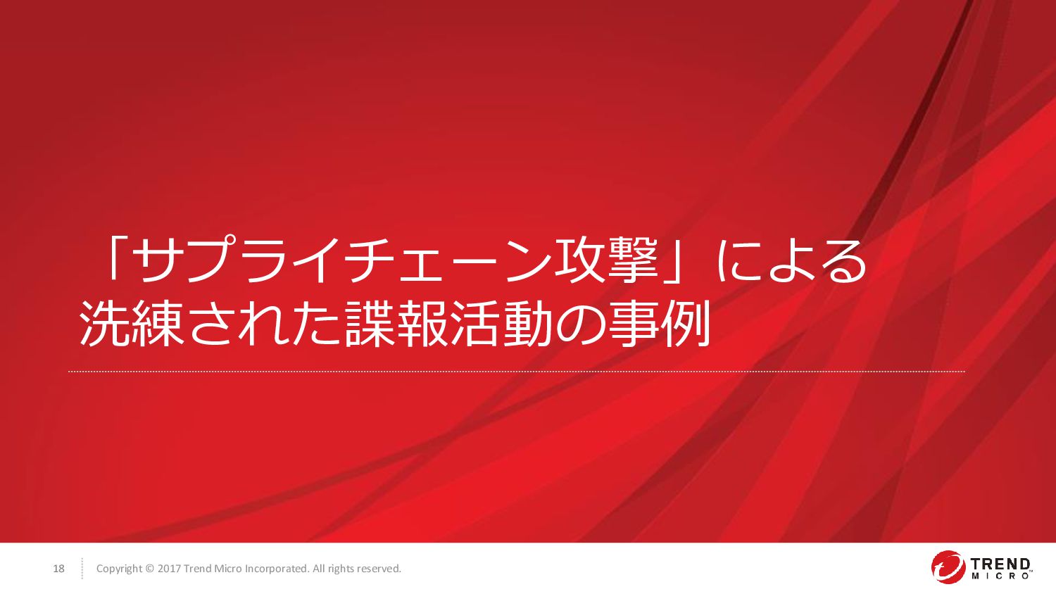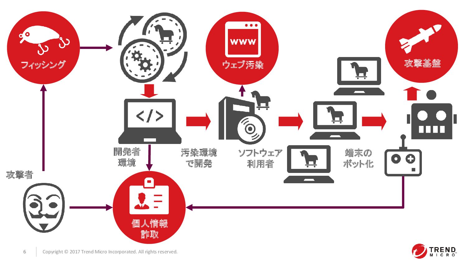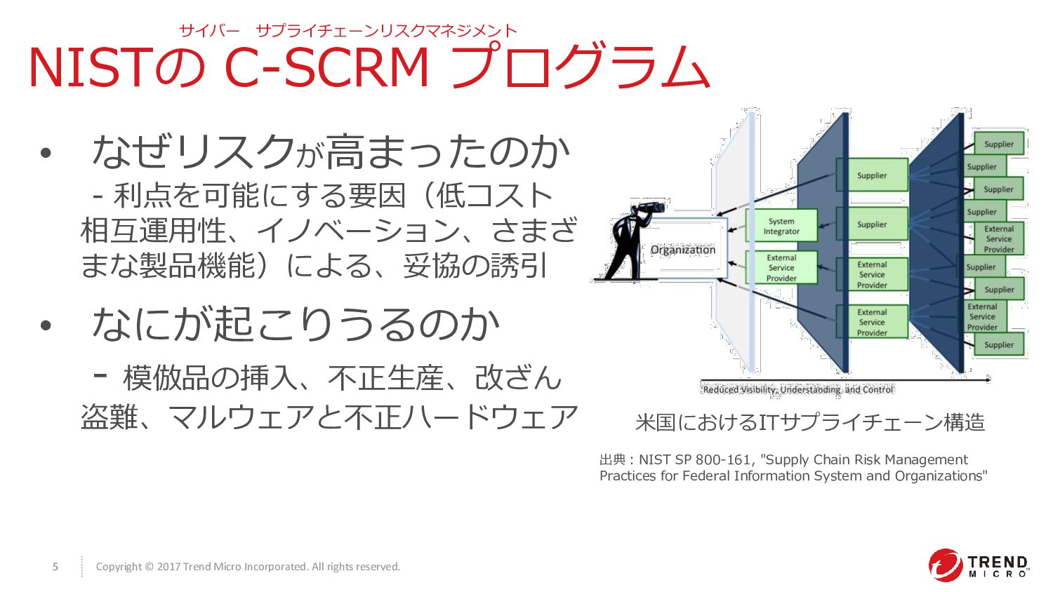 「サプライチェーン攻撃」とは何か? ライフサイクルにおける任意の時点で、敵対者がマルウェ アやその他の脆弱性を仕掛けることにより、情報技術に関 するハードウェア、ソフトウェア、オペレーティングシス テム、周辺機器(情報技術製品)、その他情報サービスに 対する不正アクセスを試みる攻撃。 Attacks that allow the adversary to utilize implants or other vulnerabilities inserted prior to installation in order to infiltrate data, or manipulate information technology hardware, software, operating systems, peripherals (information technology products) or services at any point during the life cycle. Source:米国国家安全保障システム委員会(CNSS 4009-2015)Glossary