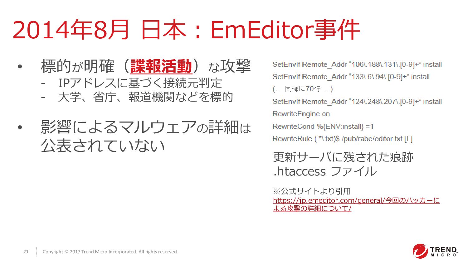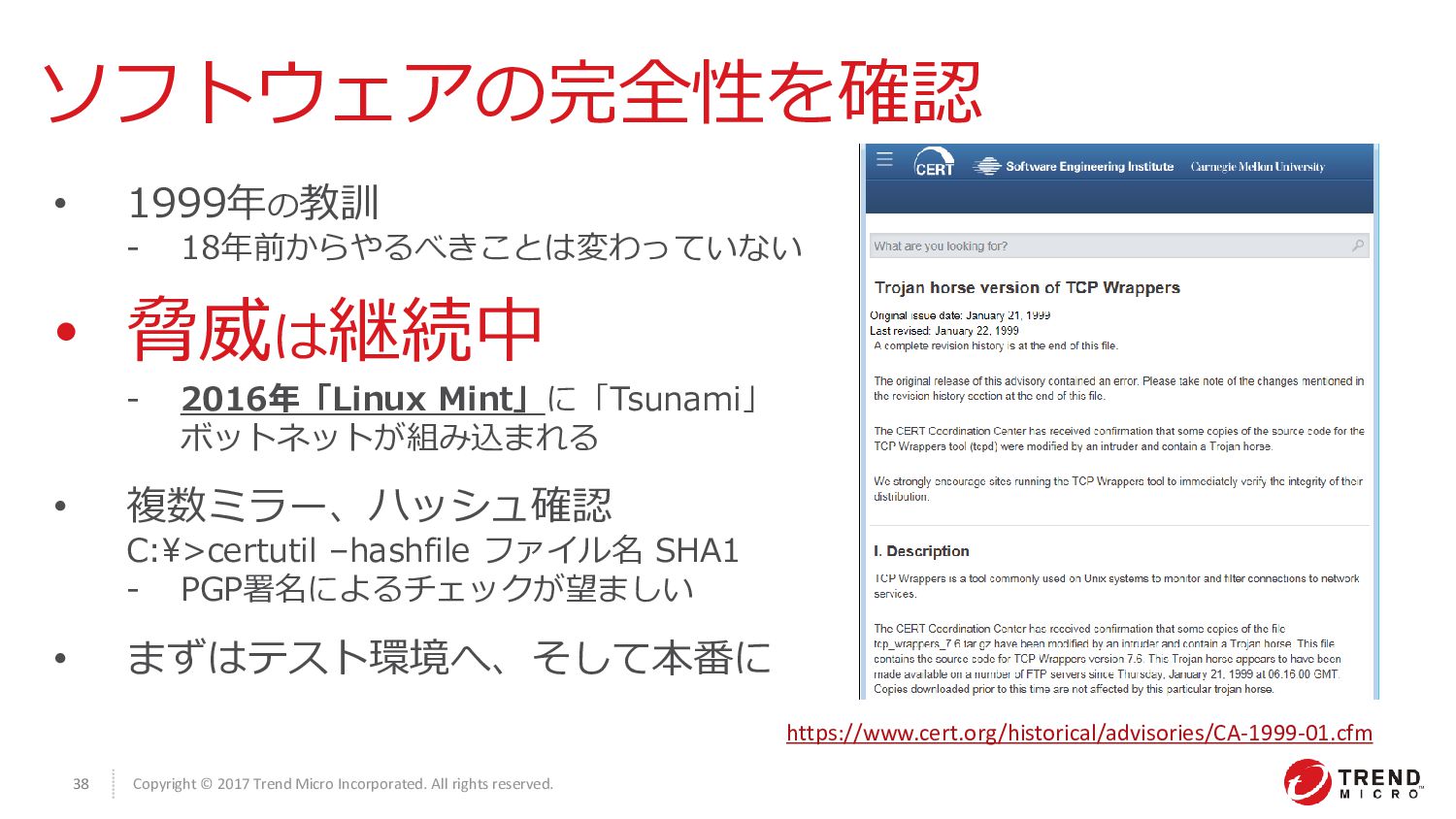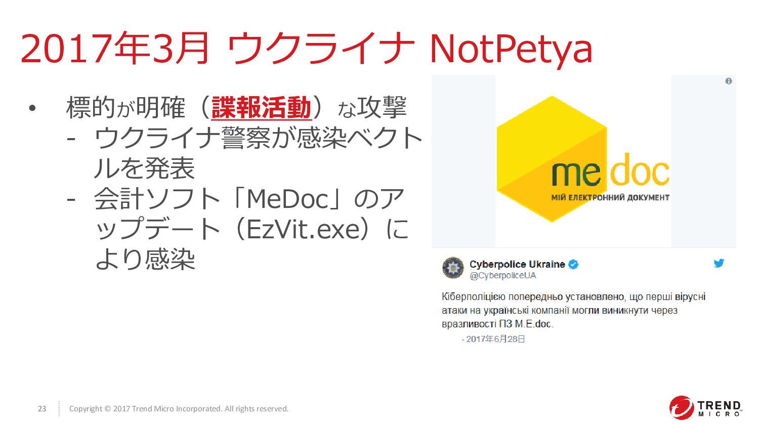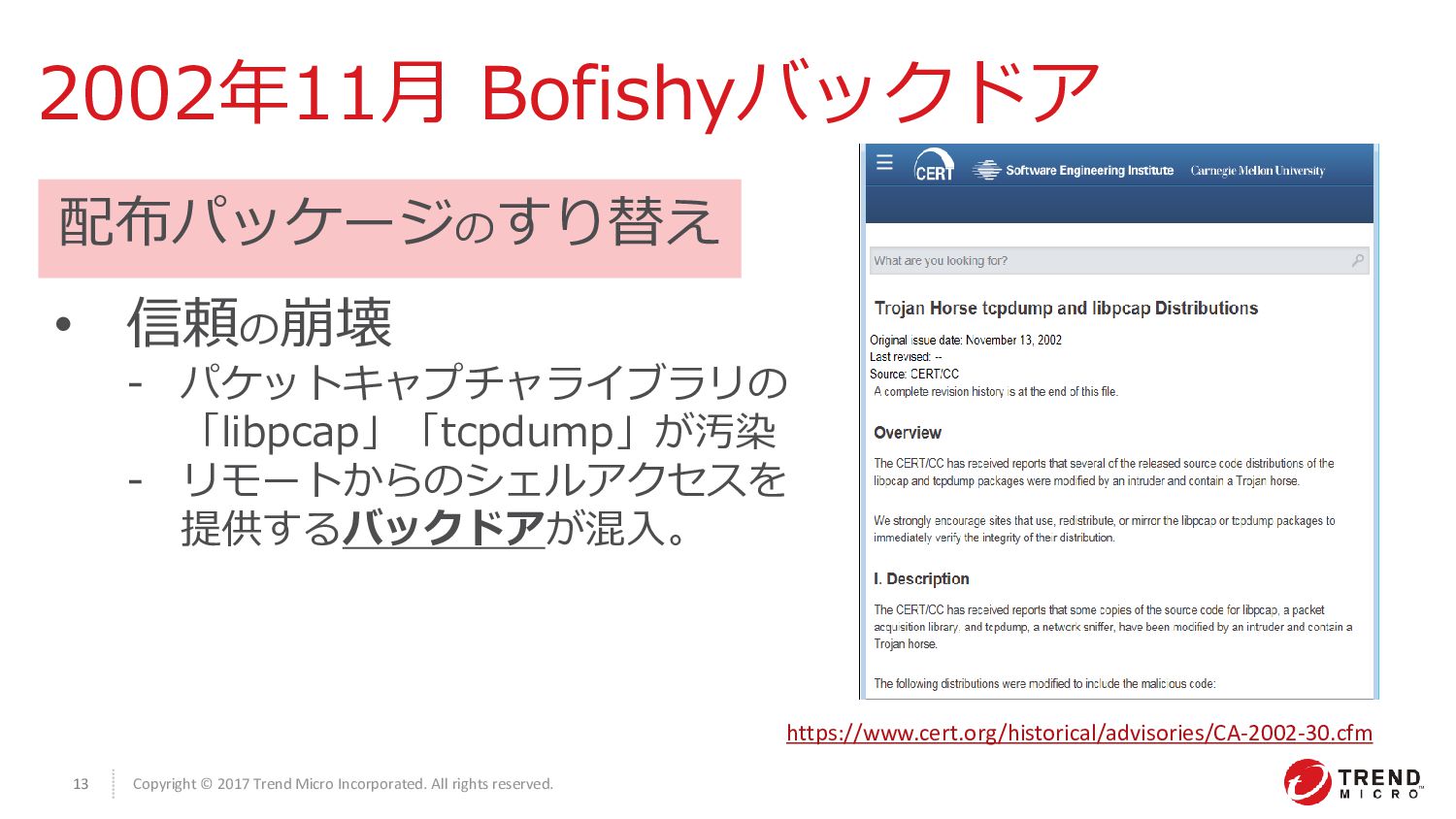 「サプライチェーン攻撃」とは何か? ライフサイクルにおける任意の時点で、敵対者がマルウェ アやその他の脆弱性を仕掛けることにより、情報技術に関 するハードウェア、ソフトウェア、オペレーティングシス テム、周辺機器(情報技術製品)、その他情報サービスに 対する不正アクセスを試みる攻撃。 Attacks that allow the adversary to utilize implants or other vulnerabilities inserted prior to installation in order to infiltrate data, or manipulate information technology hardware, software, operating systems, peripherals (information technology products) or services at any point during the life cycle. Source:米国国家安全保障システム委員会(CNSS 4009-2015)Glossary