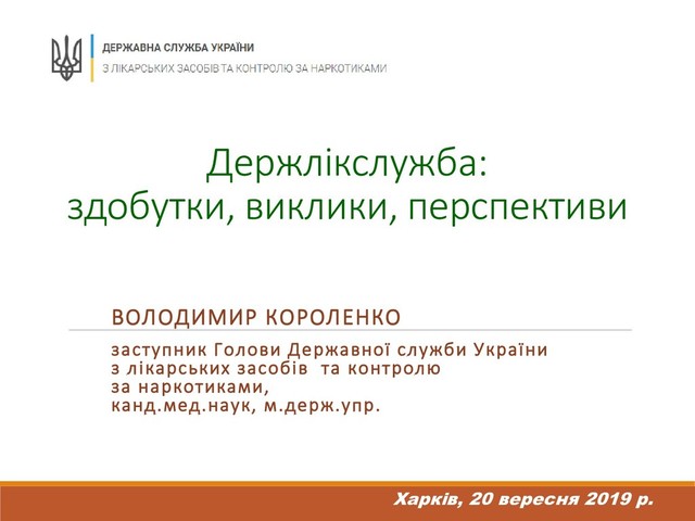 2019 р.) Меморандуми про співпрацю • реалізація державної політики у сфері контролю якості та безпеки ЛЗ та МВ; • здійснення державного нагляду за якістю та безпекою використання ЛЗ та МВ; • протидія обігу фальсифікованих ЛЗ; • виявлення причин та умов, що сприяють незаконному обігу фальсифікованих ЛЗ, наркотичних засобів, психотропних речовин, їх аналогів та прекурсорів Меморандум про співпрацю між Держлікслужбоюта Державною фіскальною службою України строком на 5 років (1 лютого 2019 р.) Метою співпраці в рамках Меморандуму є об’єднання зусиль, спрямованих на протидію обігу незареєстрованих, ввезених на територію України з порушенням митних правил, неякісних, фальсифікованих ЛЗ, протидію обігу наркотичних засобів, психотропних речовин і прекурсорів та протидію незаконному введенню в обіг.