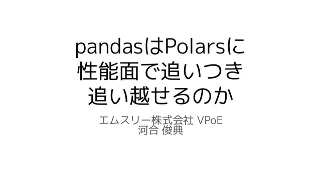 pandasはPolarsに 性能面で追いつき 追い越せるのか エムスリー株式会社 VPoE 河合 俊典