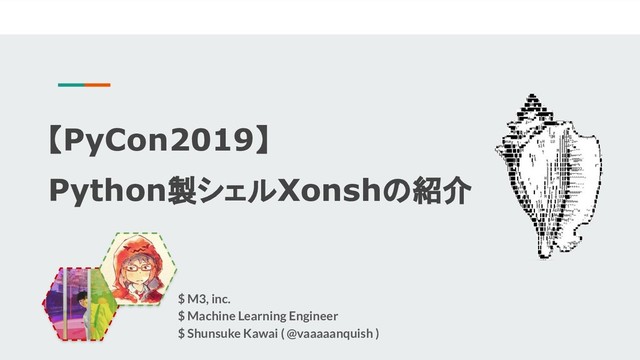 【PyCon2019】 Python製シェルXonshの紹介 $ M3, inc. $ Machine Learning Engineer $