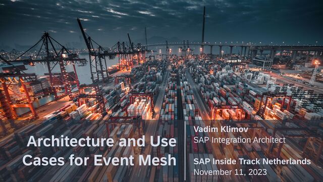 Event: SAP Inside Track Netherlands 2023 Date: November 11, 2023 Speaker: Vadim Klimov Session: Architecture and use cases for event mesh