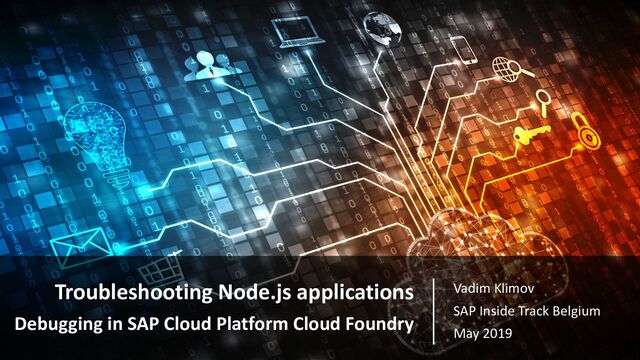 local environment, if possible 4 ▪ Do not kick off remote debugging straightaway – firstly, assess feasibility of running a Node.js application in a local environment in a representational way, reproducing an issue and debugging it locally. ▪ Reproduce integral components of an application environment (runtime, dependencies, etc.) in a local environment, or ensure a local environment has access to corresponding remote dependencies, or mock them. ▪ Use the same code base of the application when running it in local and remote environments. ▪ Few useful NPM packages to simplify access to application environment variables and unify it between local and Cloud Foundry deployments: ▪ dotenv (https://www.npmjs.com/package/dotenv) – to load environment variables. ▪ cfenv (https://www.npmjs.com/package/cfenv) – to access an application container environment in Cloud Foundry (when application runs in Cloud Foundry) or emulate it in a local environment (when application runs locally).