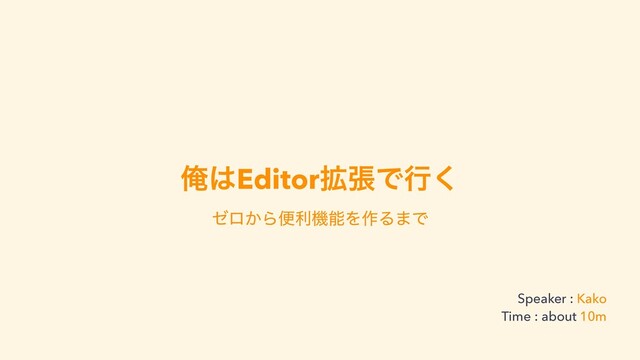 ԶEditor֦ுͰߦ͘ θϩ͔ΒศརػೳΛ࡞Δ·Ͱ Speaker : Kako Time : about 10m