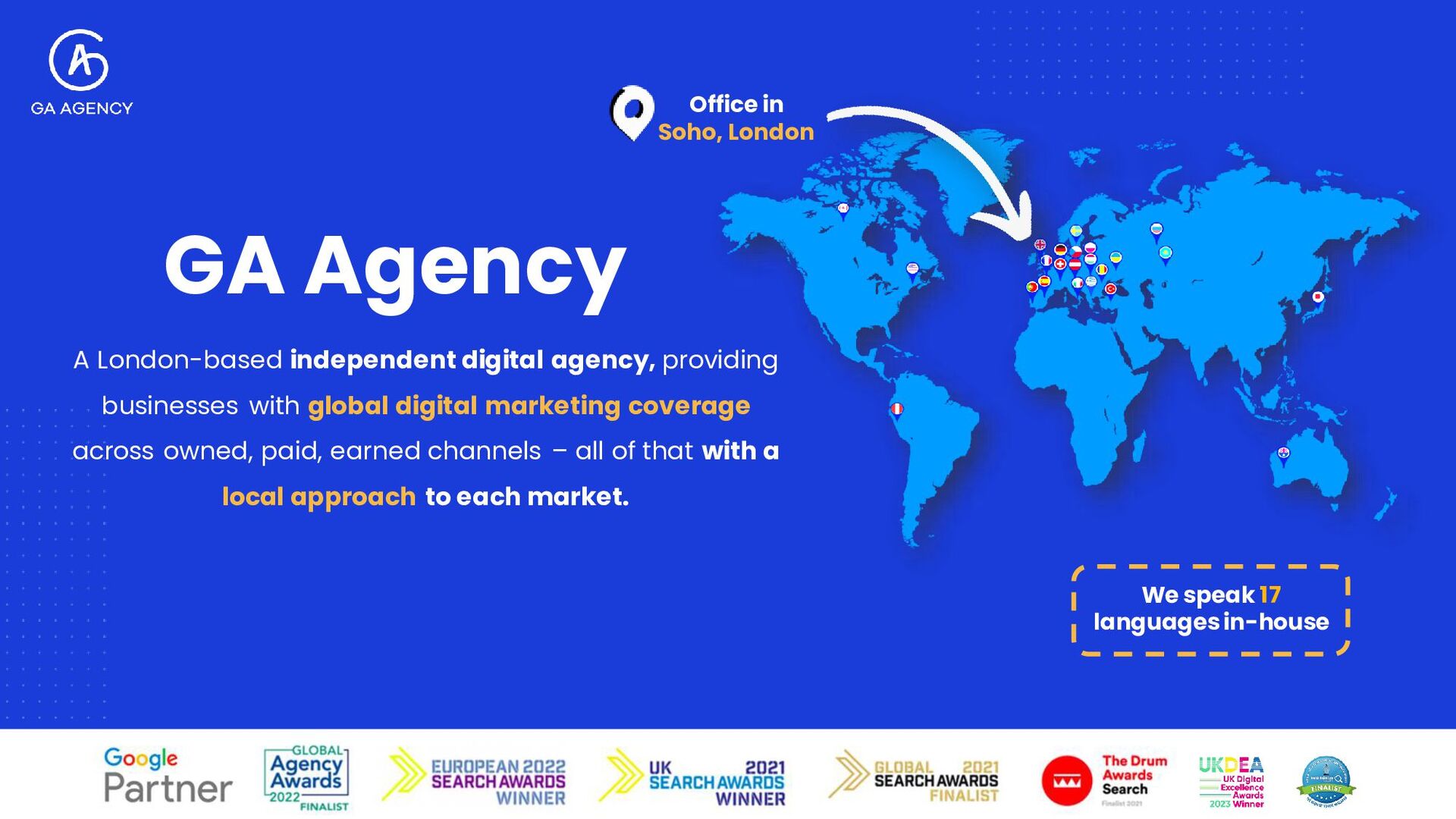 Agency A London-based independent digital agency, providing businesses with global digital marketing coverage across owned, paid, earned channels – all of that with a local approach to each market. Office in Soho, London We speak 17 languages in-house