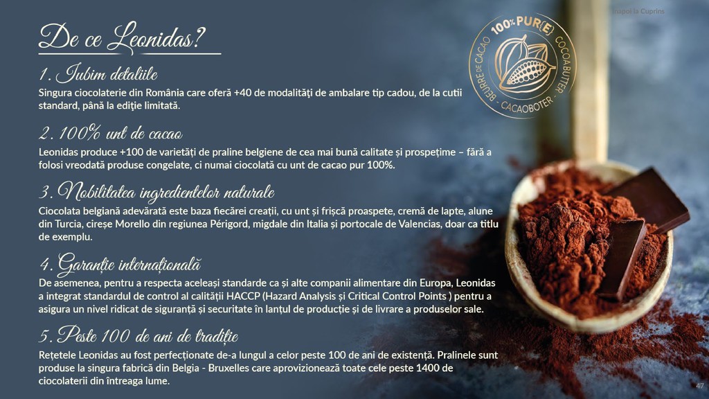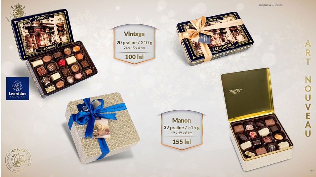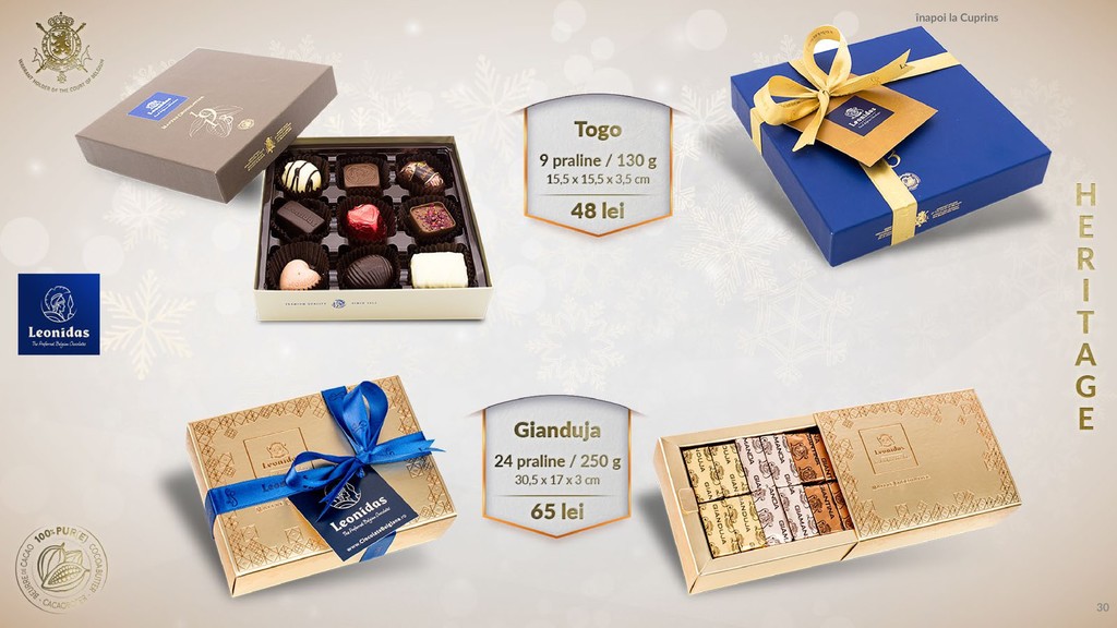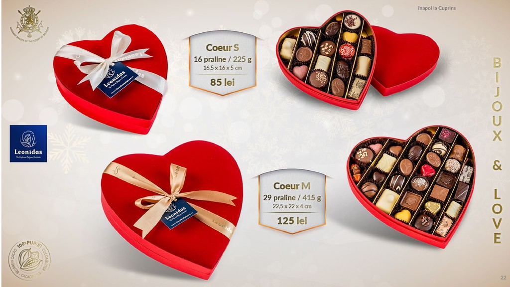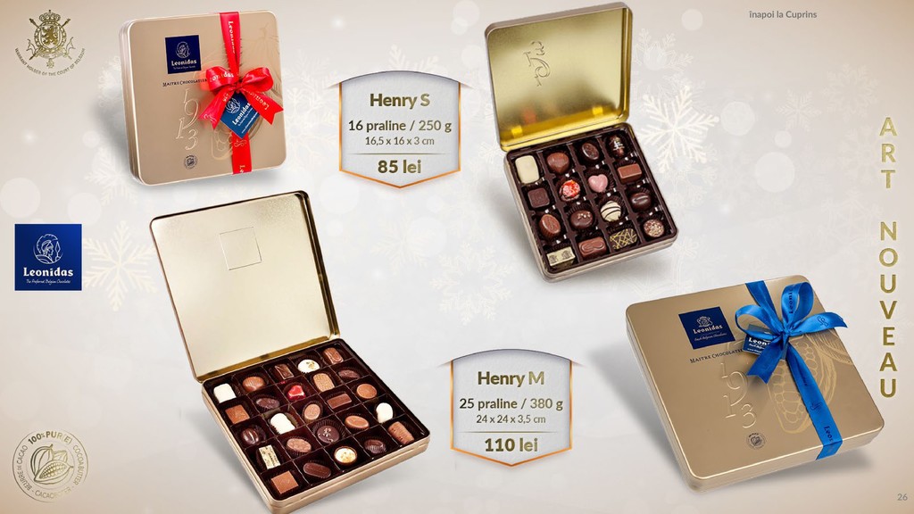 Am pregătit un catalog pentru tine în care să găsești produsele tale favorite, praline din cea mai fină ciocolată belgiană.