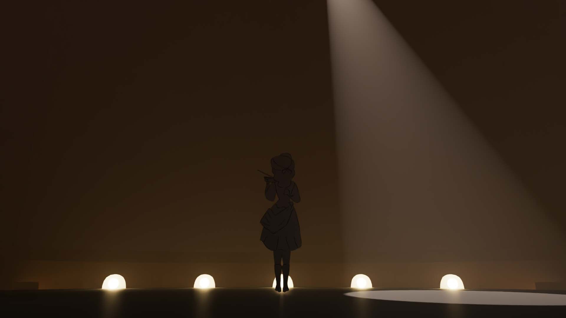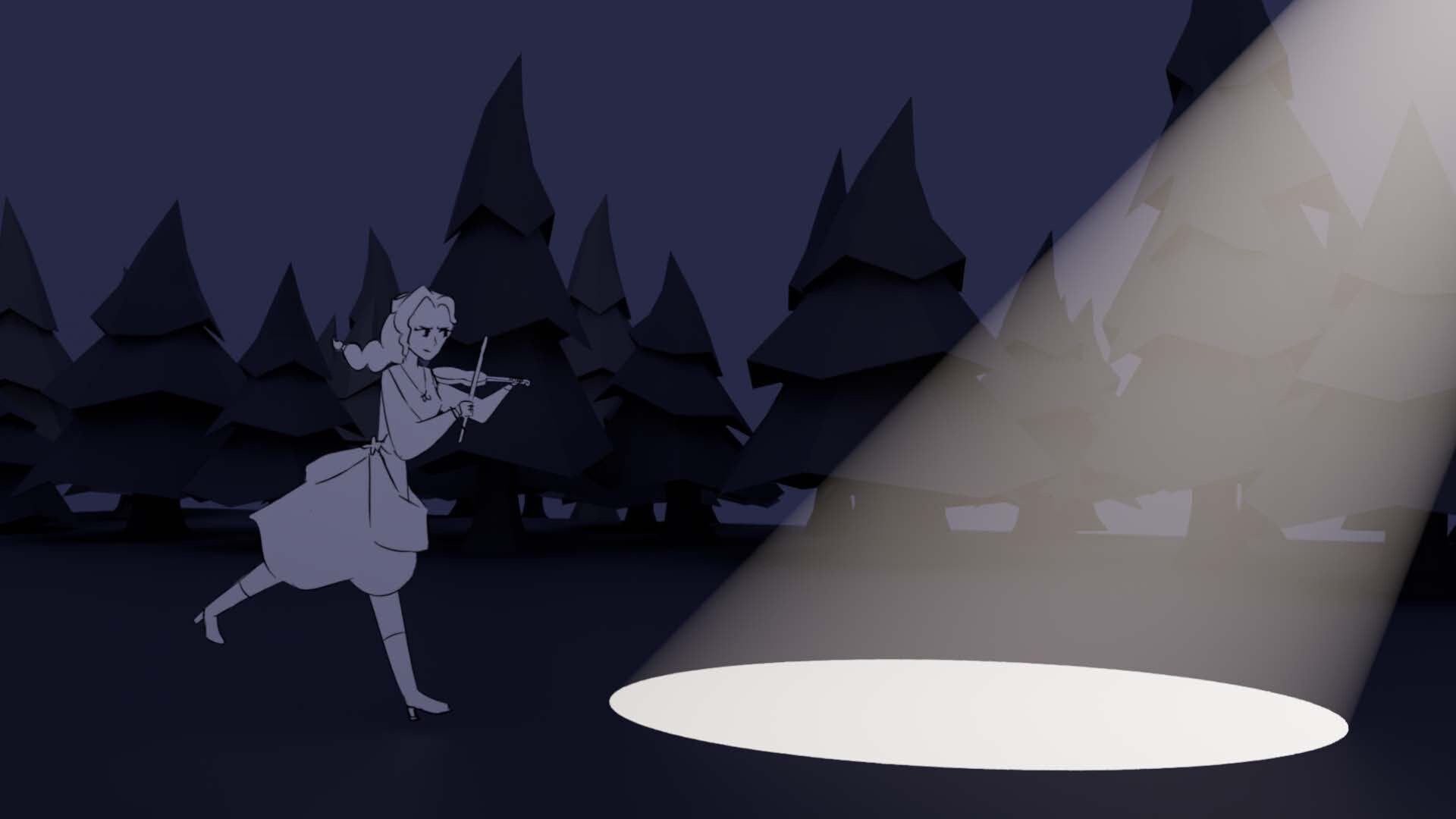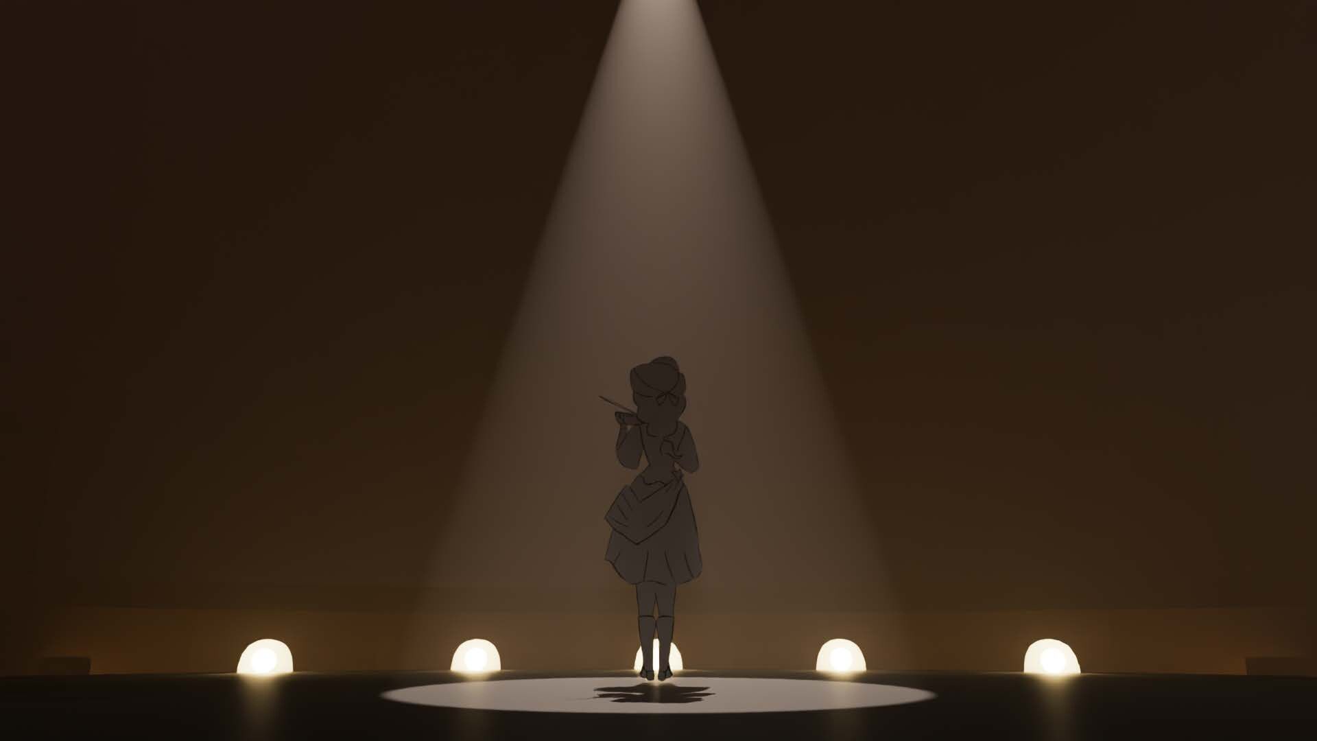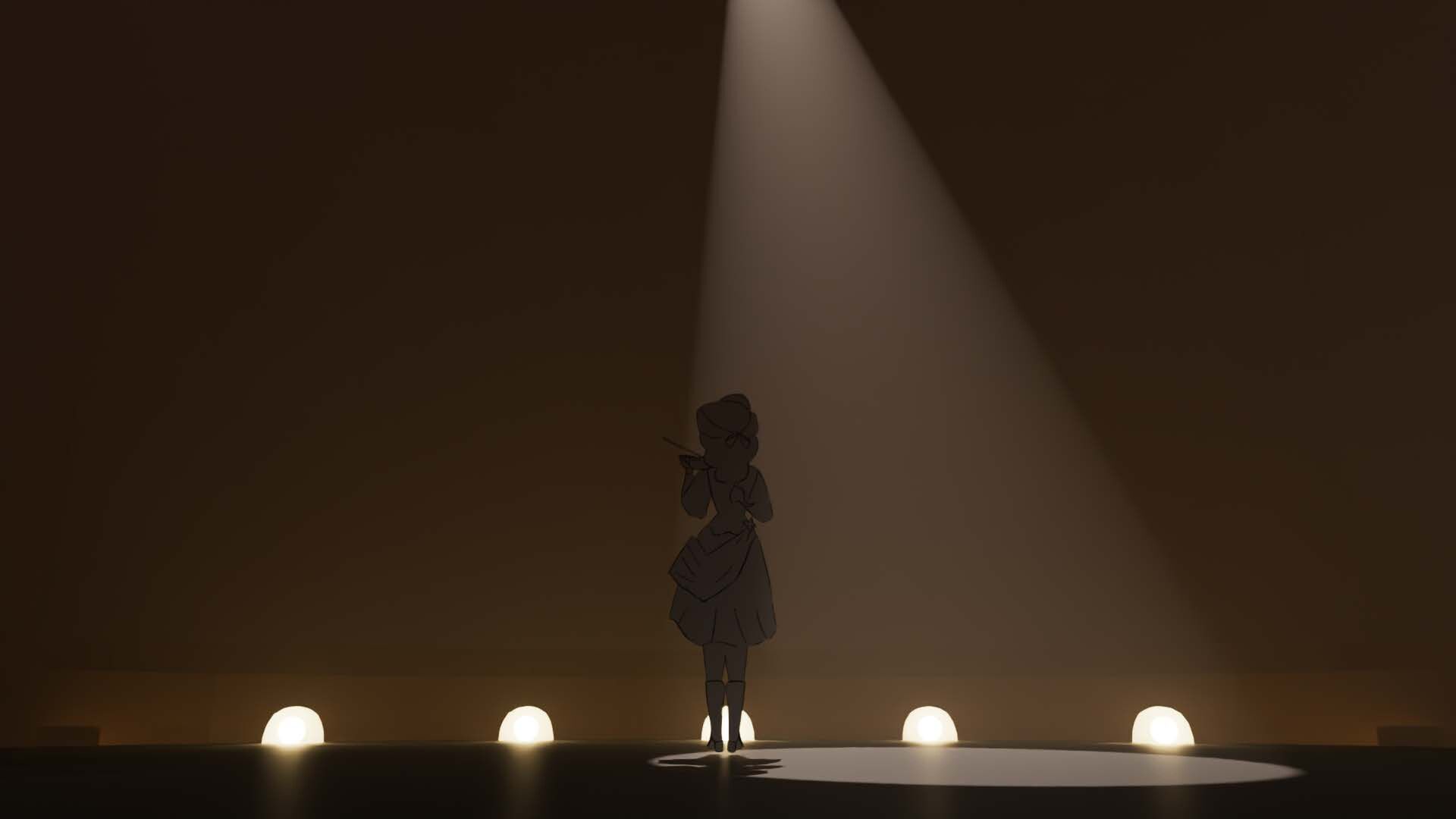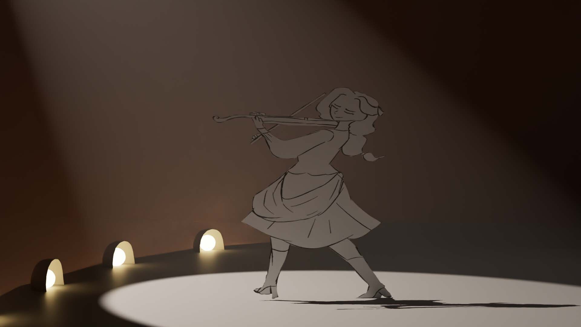 Elena, a musician, is abandoned by the spotlight in the middle of a concert, and is set to chase after it.
