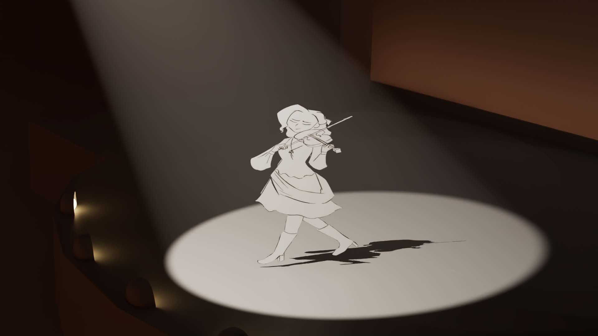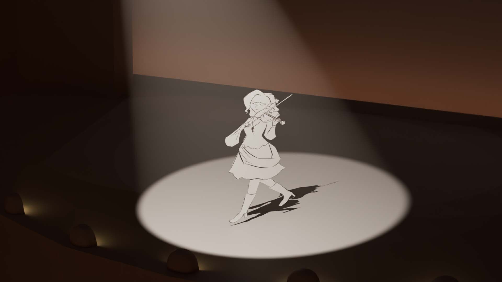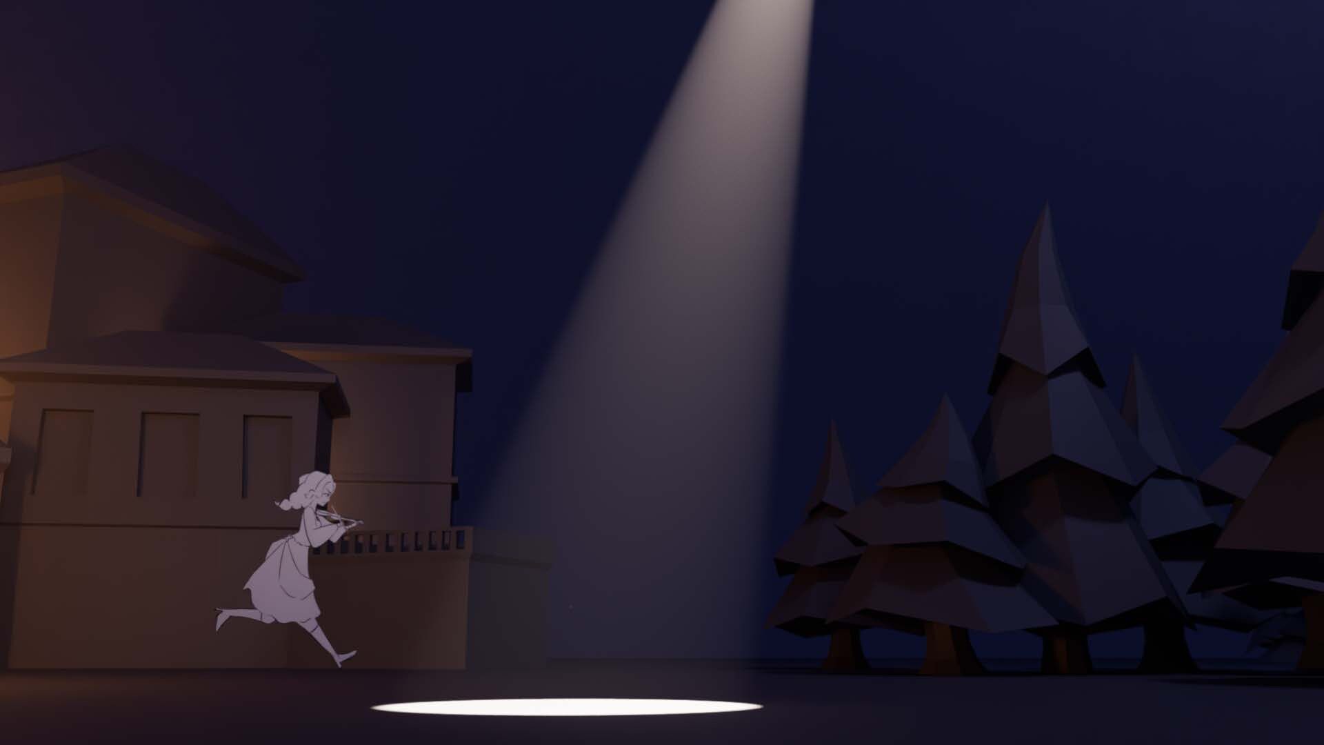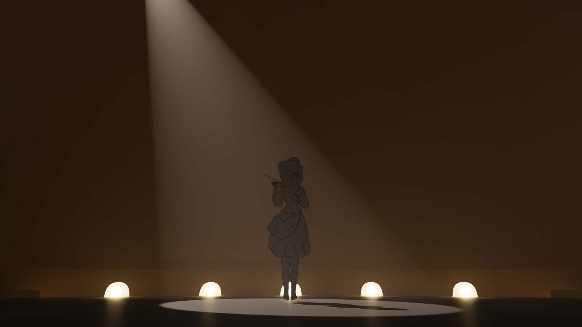 Elena, a musician, is abandoned by the spotlight in the middle of a concert, and is set to chase after it.