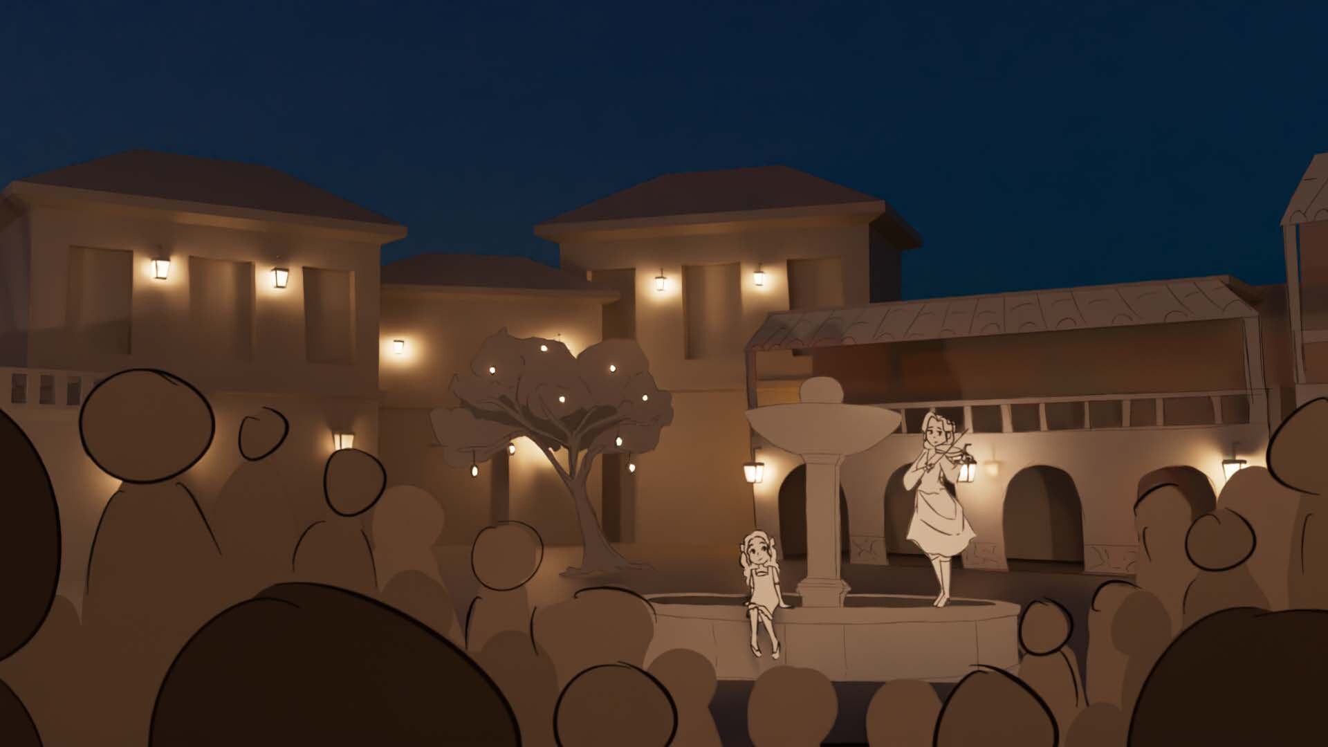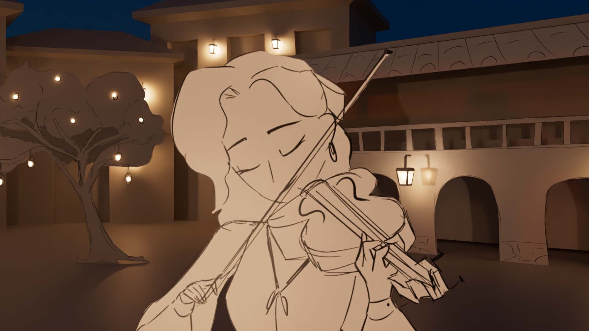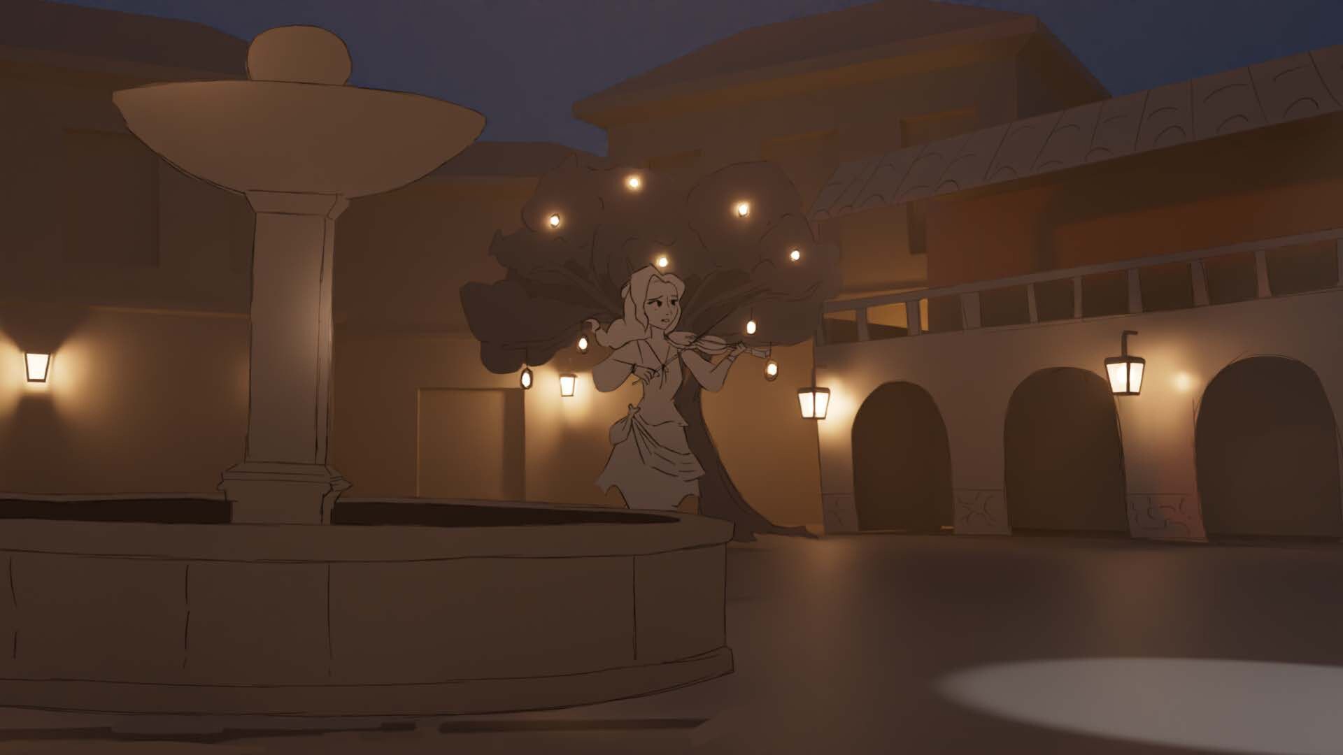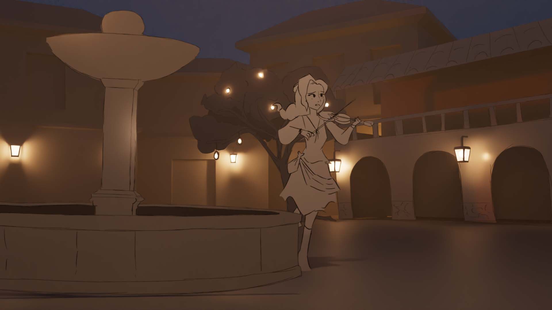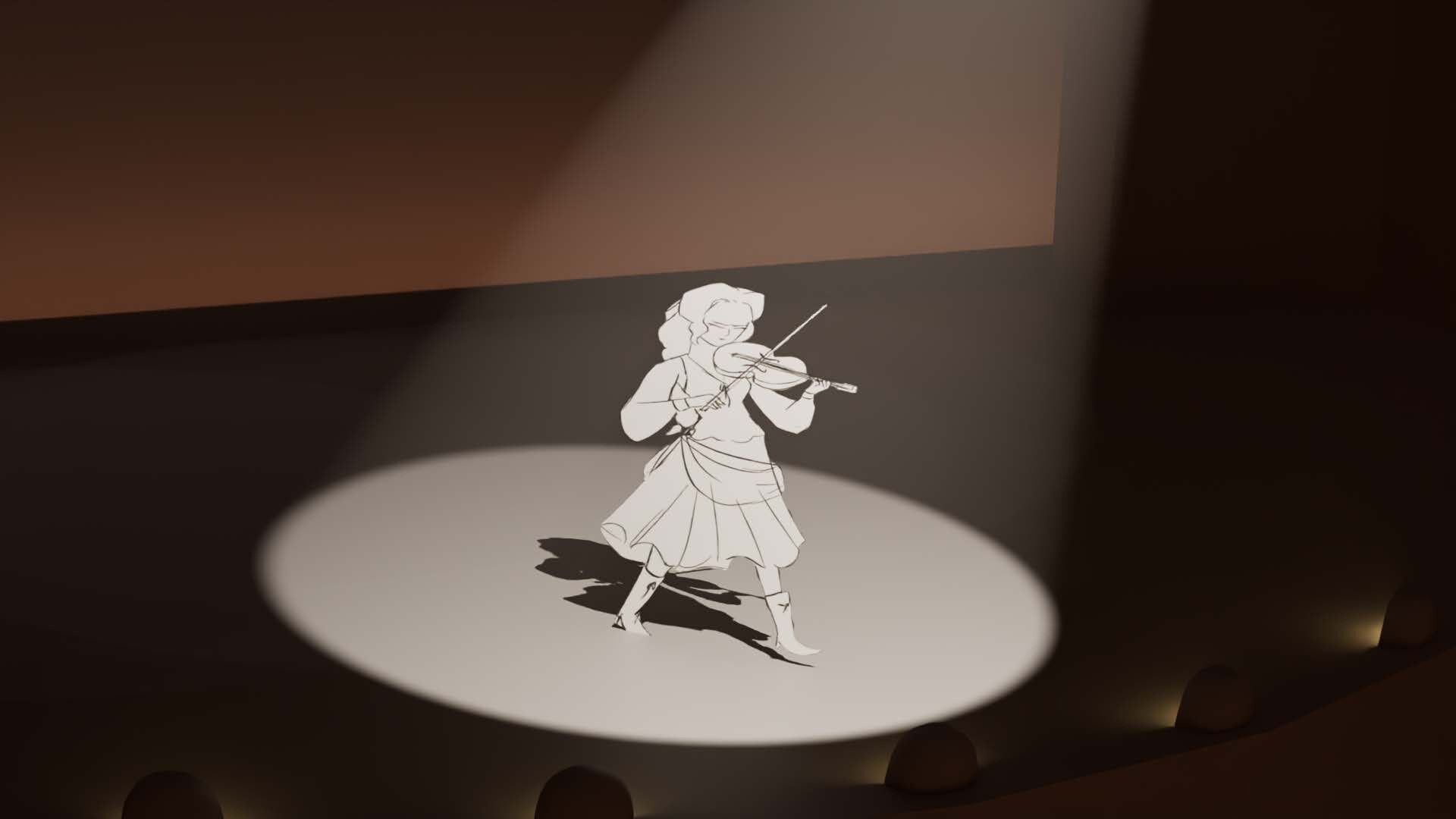 Elena, a musician, is abandoned by the spotlight in the middle of a concert, and is set to chase after it.