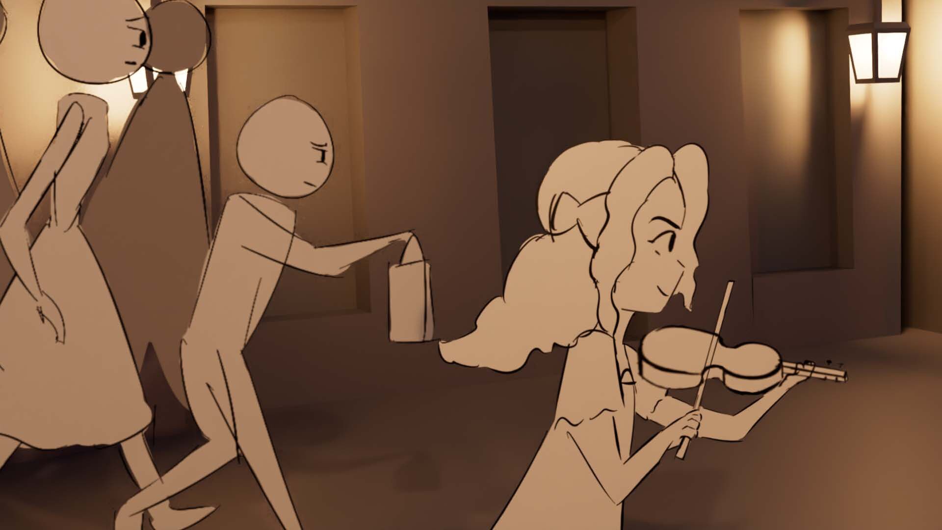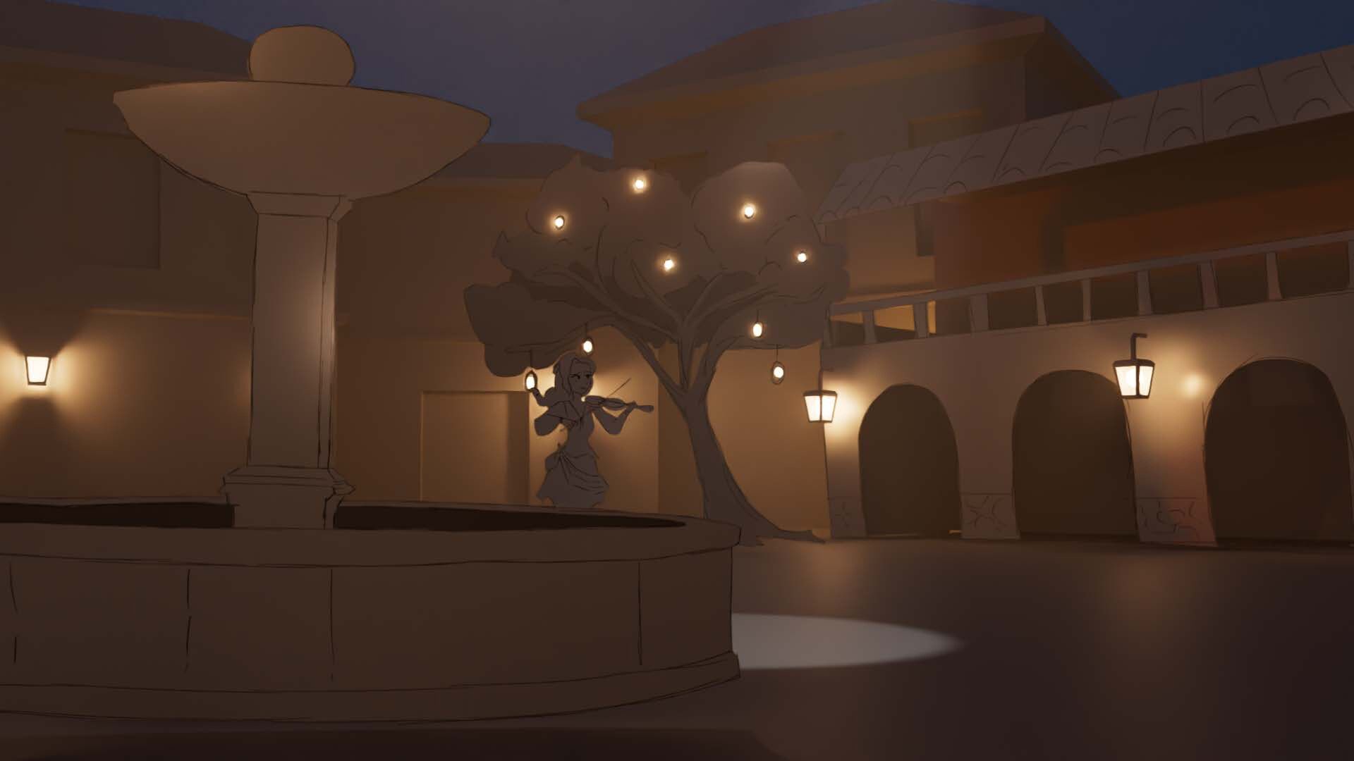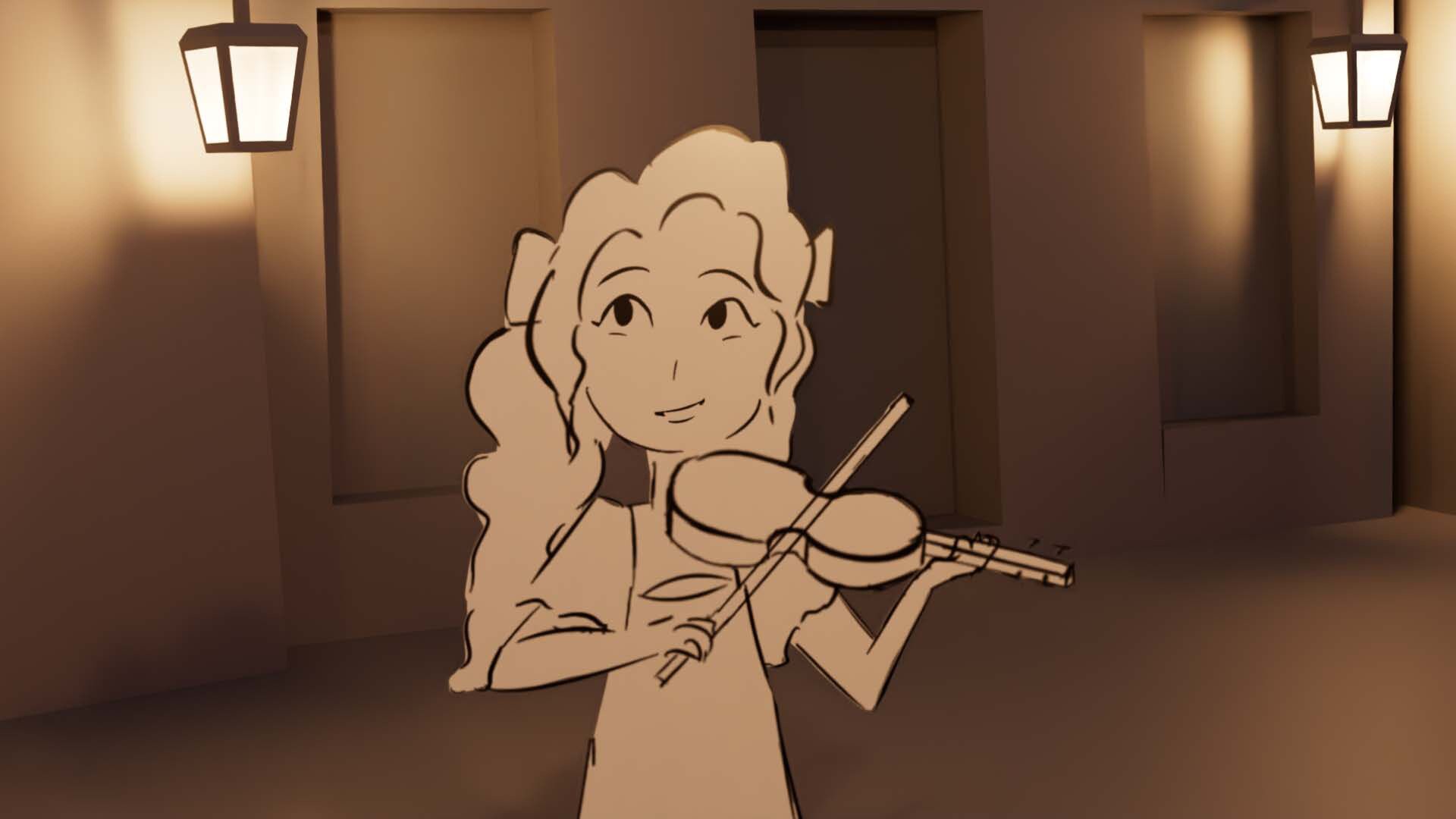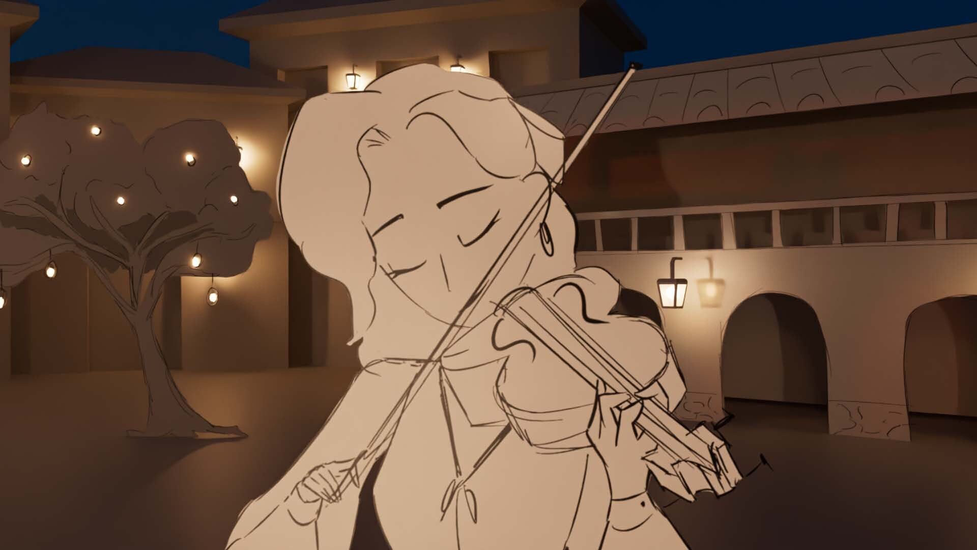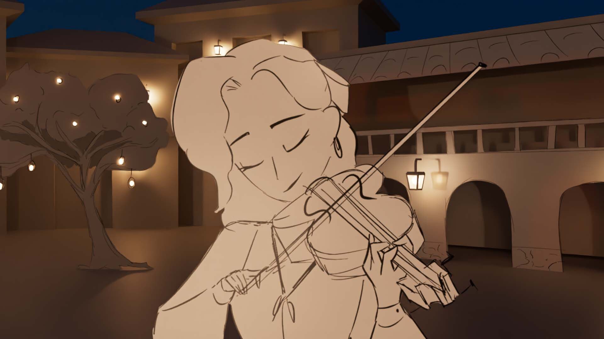 Elena, a musician, is abandoned by the spotlight in the middle of a concert, and is set to chase after it.