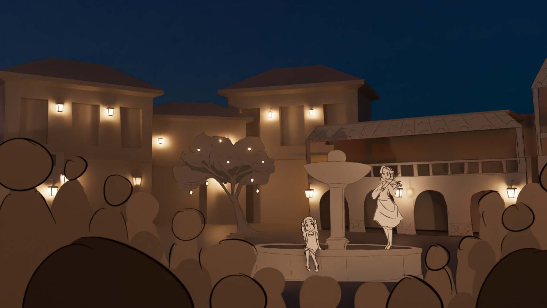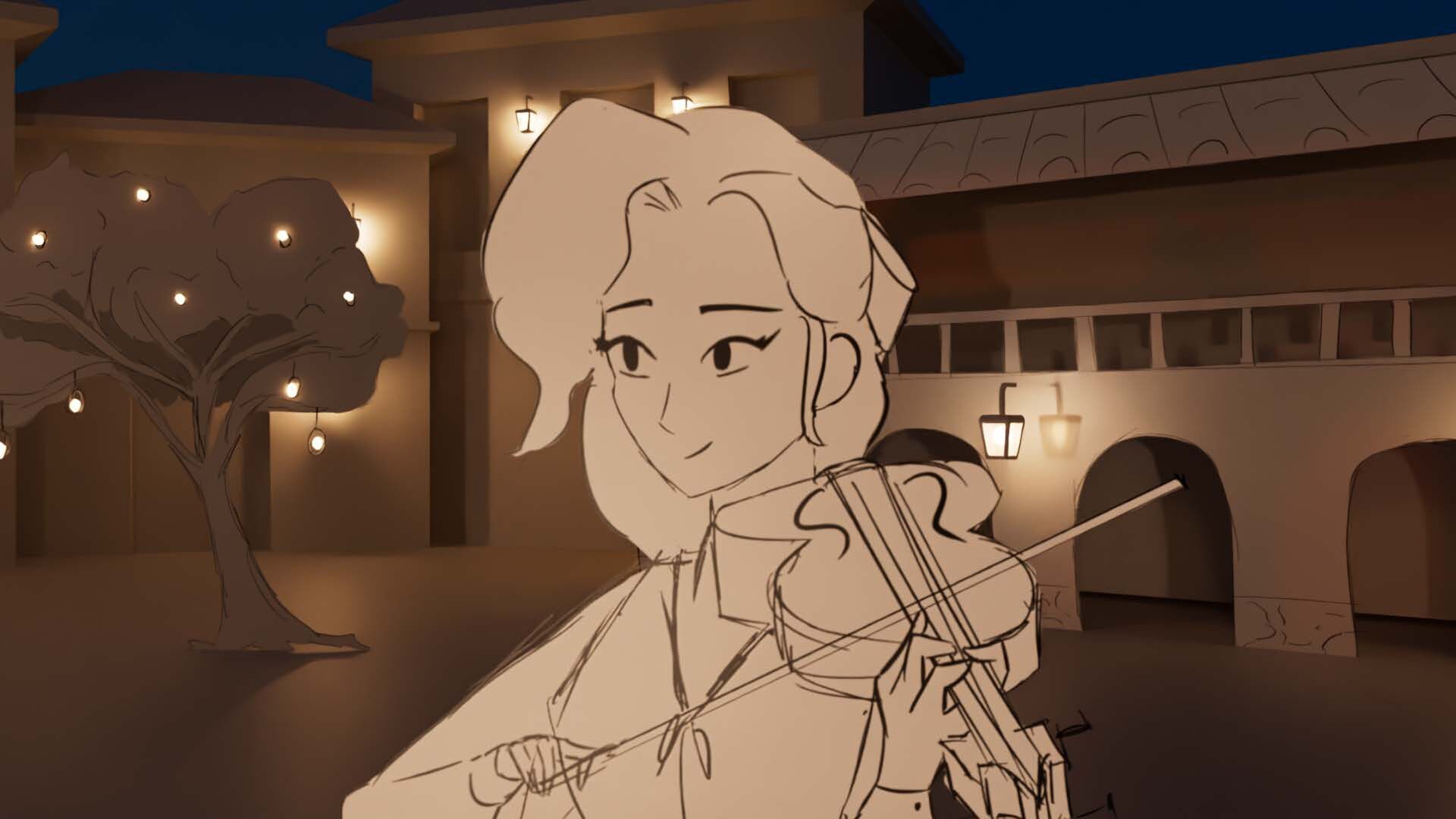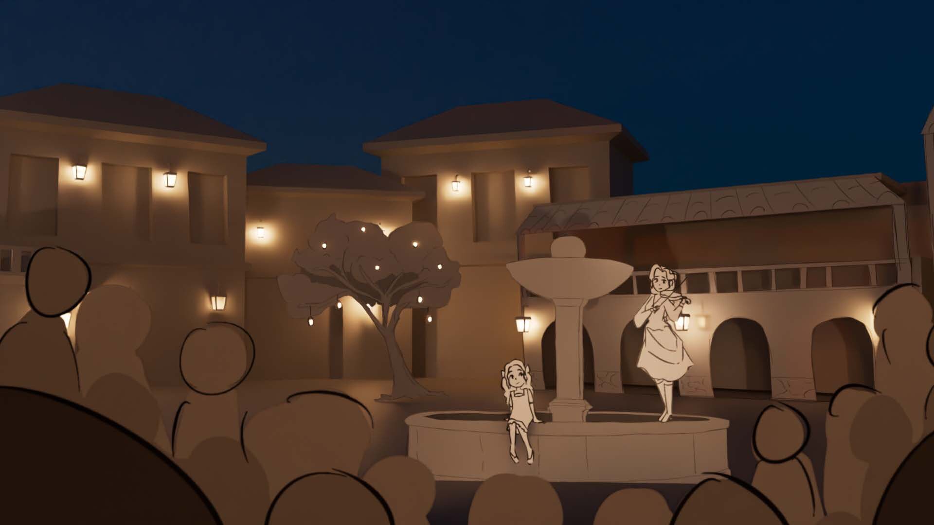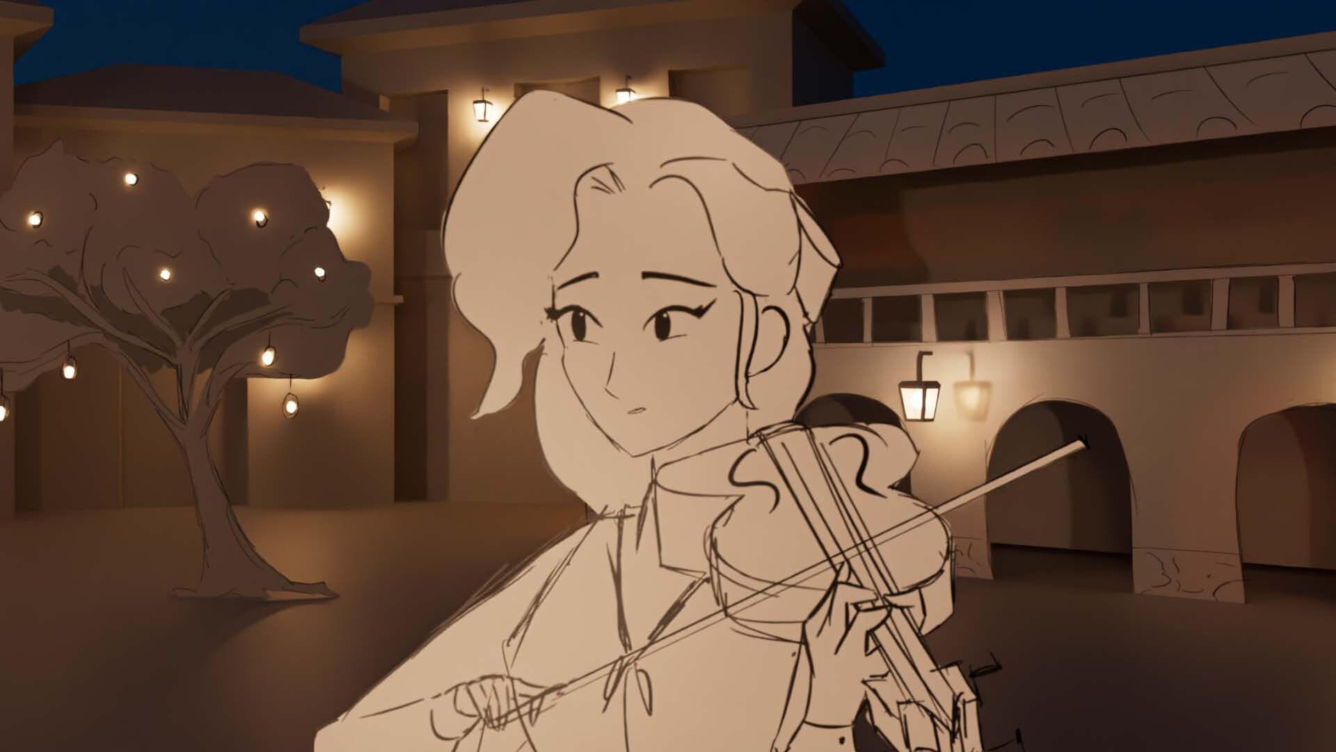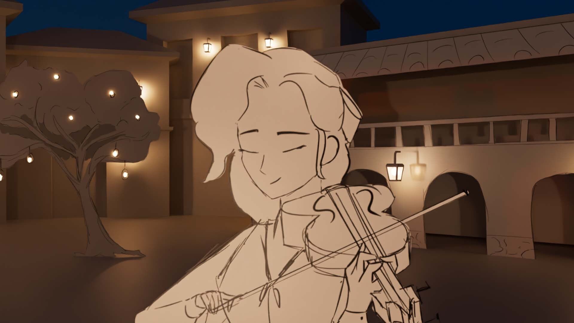 Elena, a musician, is abandoned by the spotlight in the middle of a concert, and is set to chase after it.