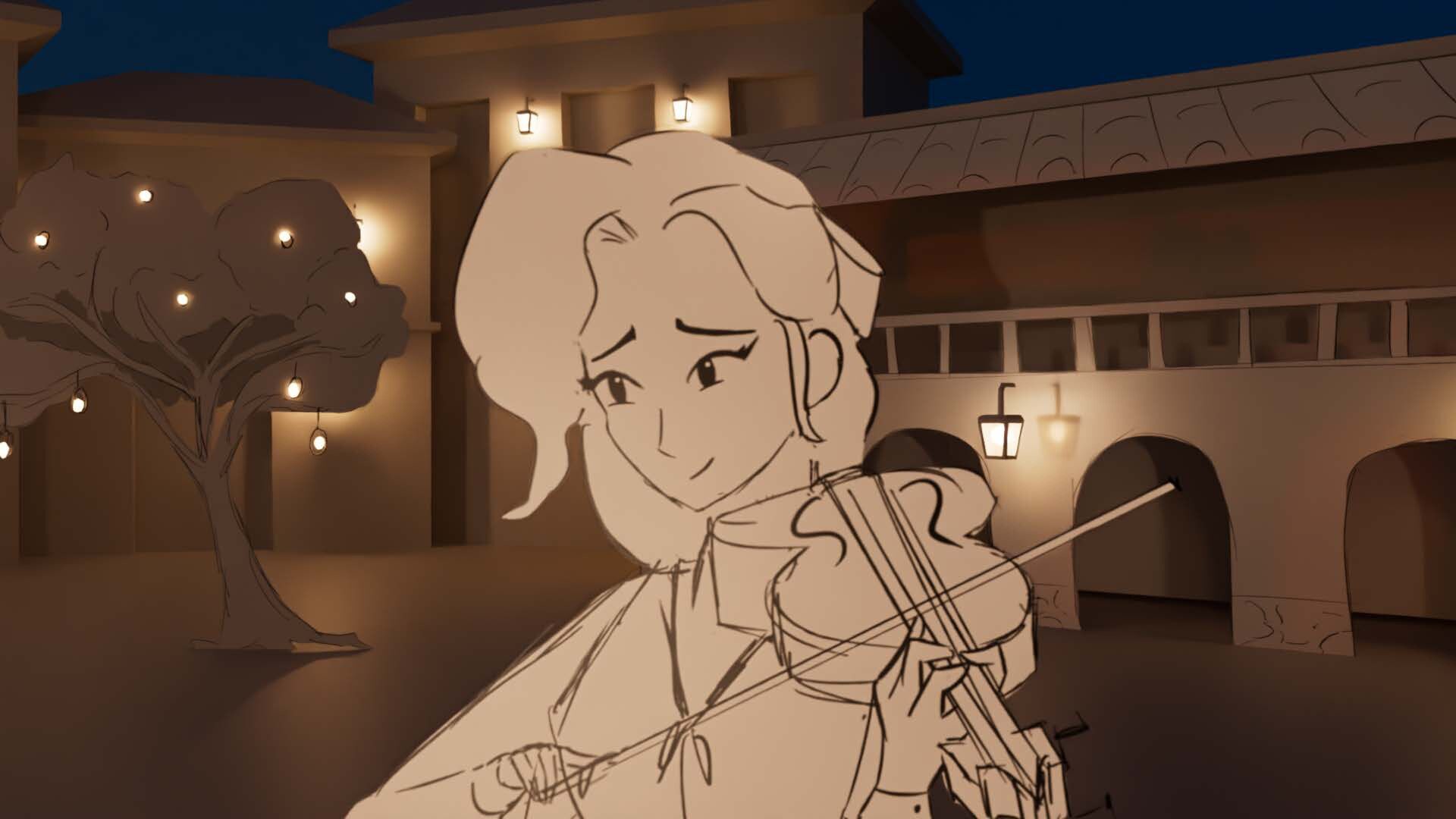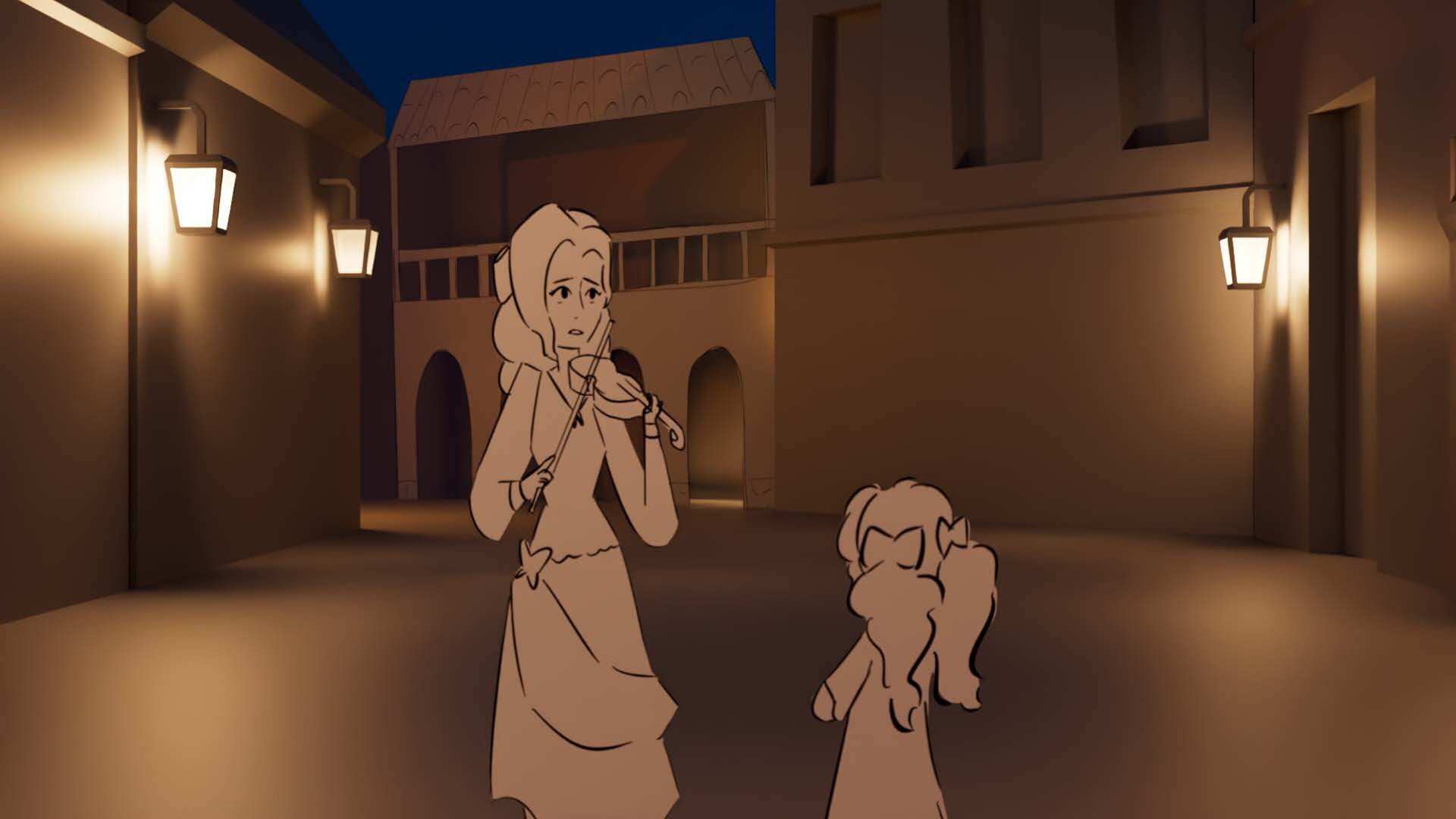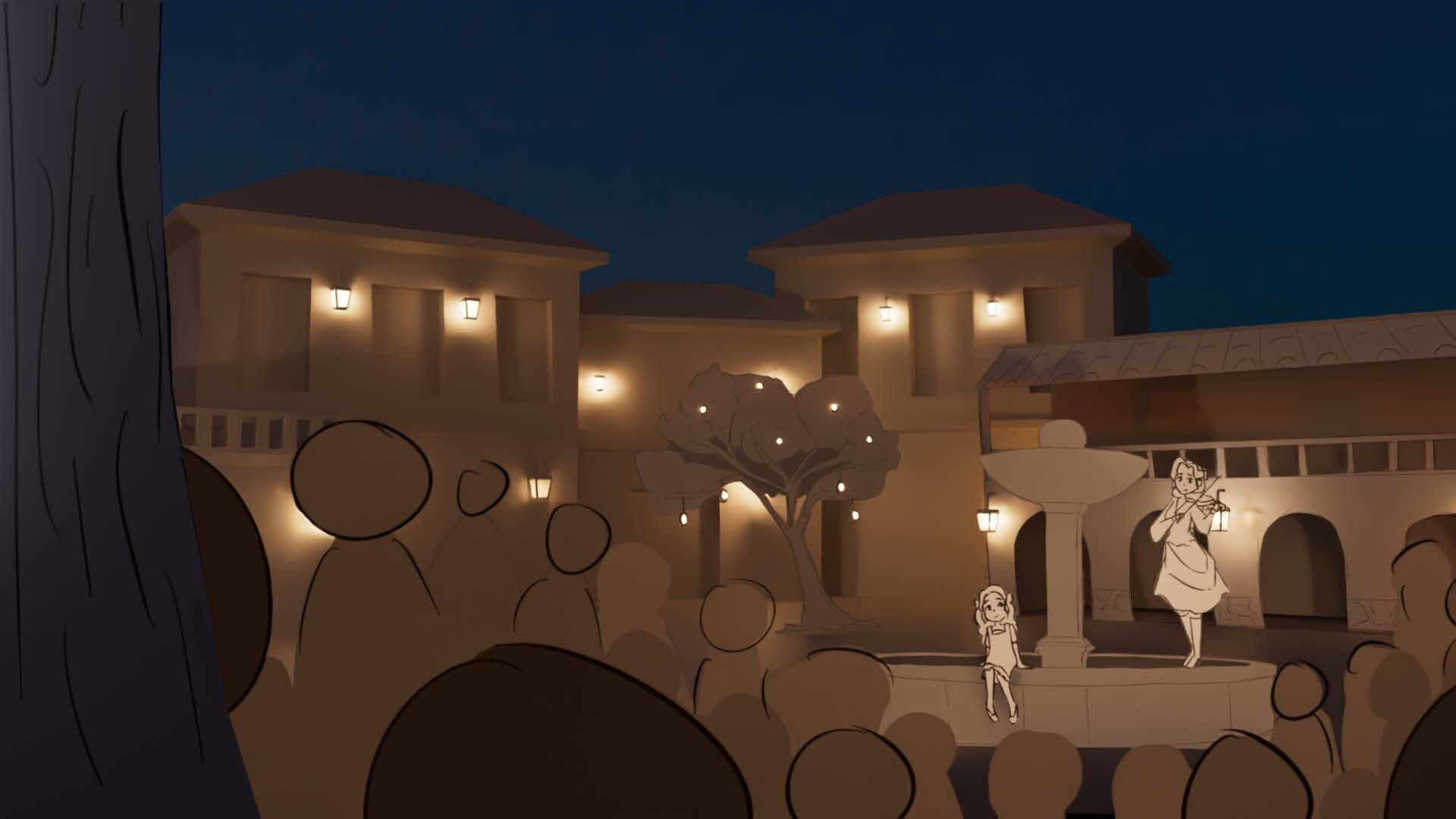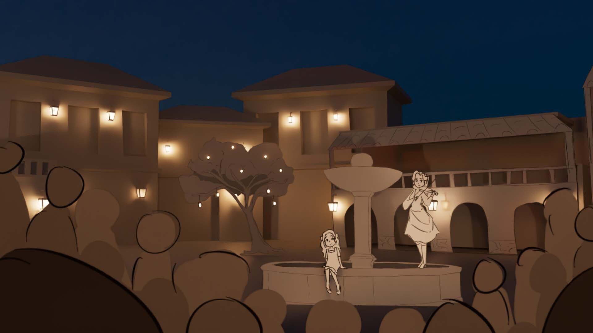 Elena, a musician, is abandoned by the spotlight in the middle of a concert, and is set to chase after it.