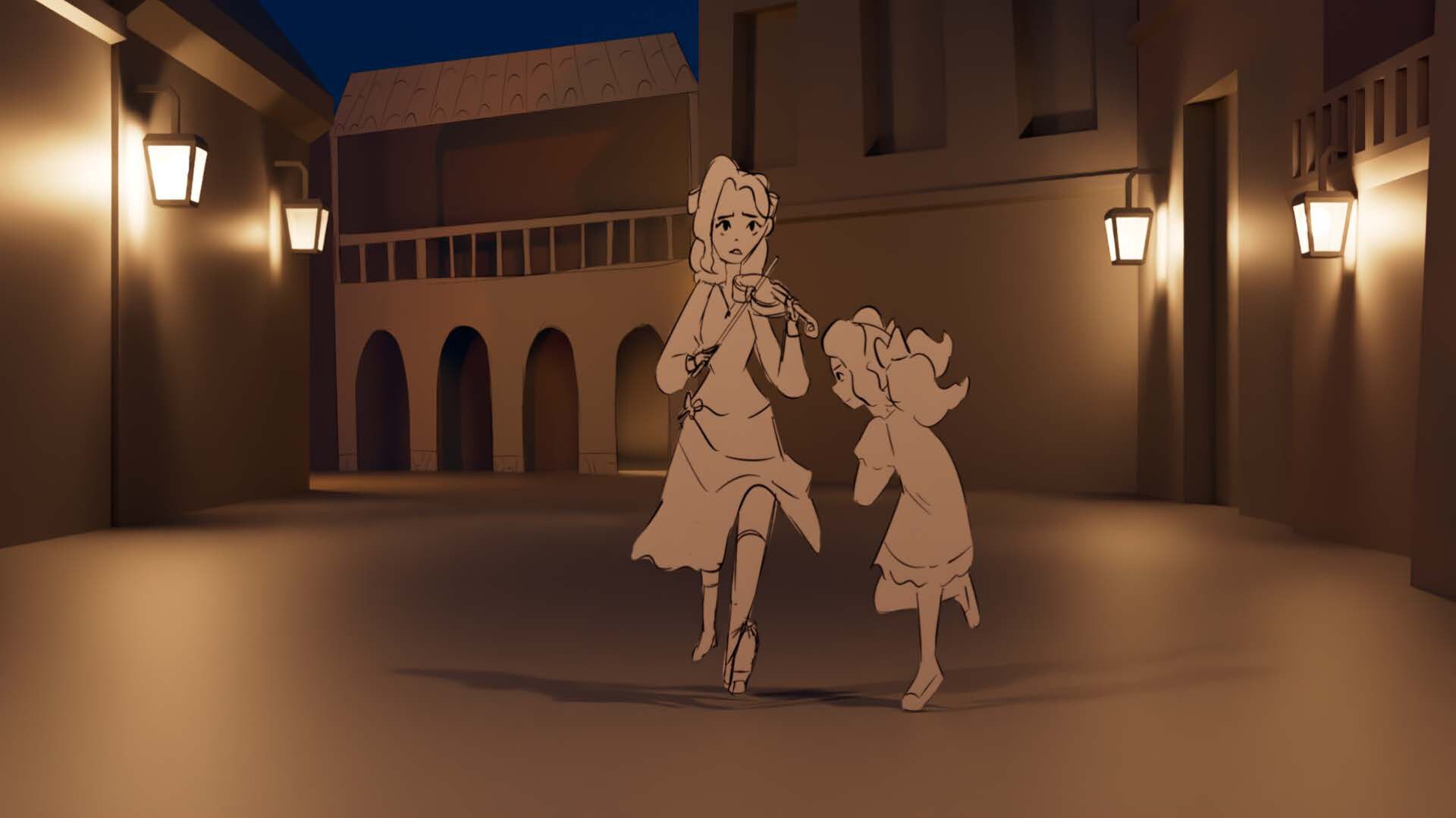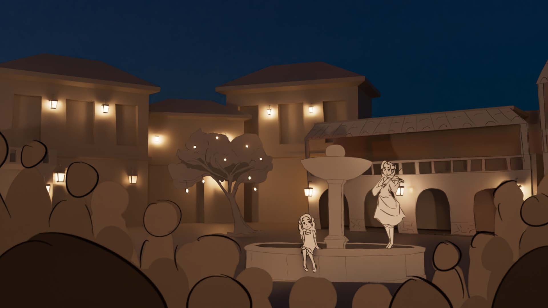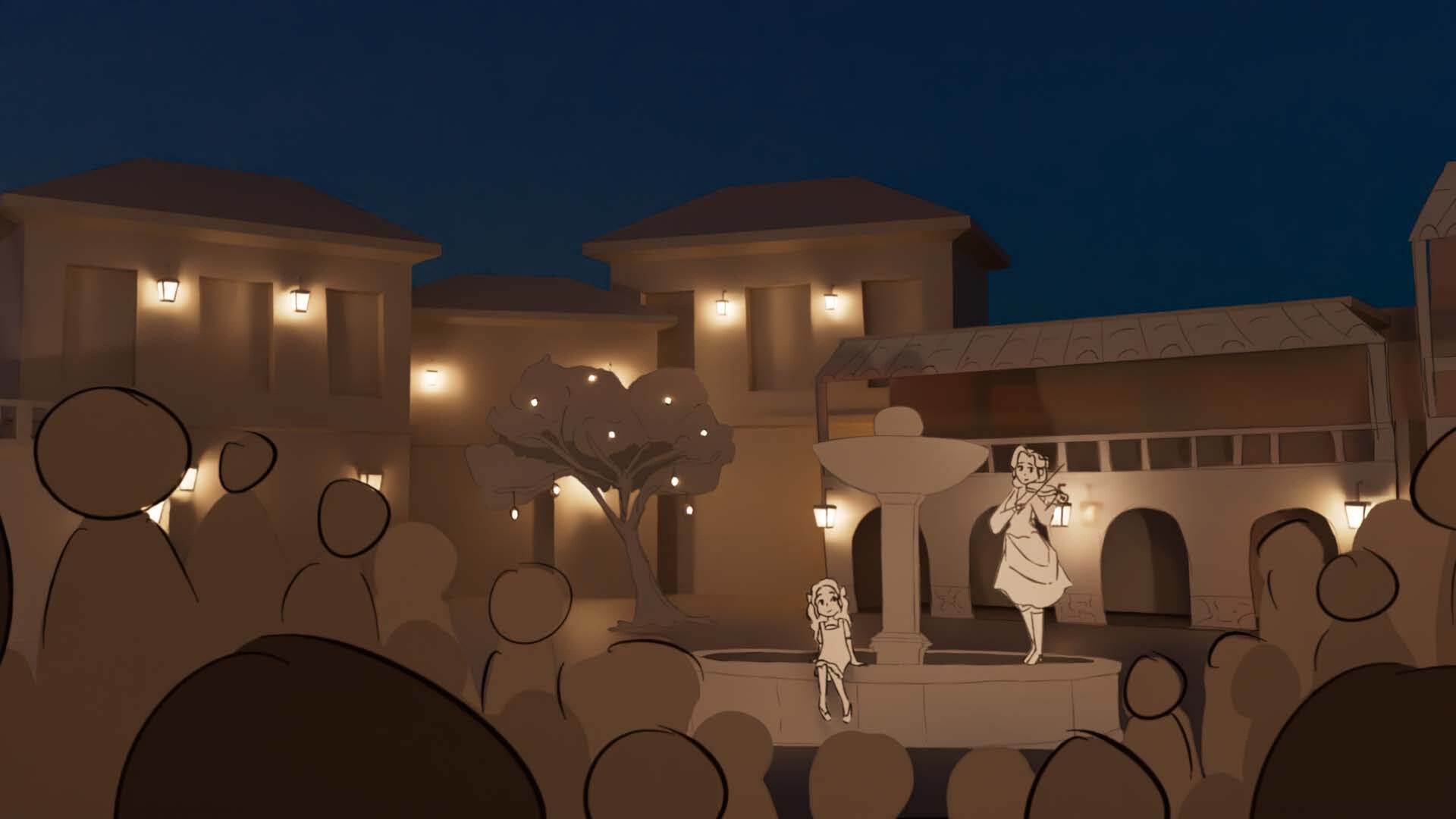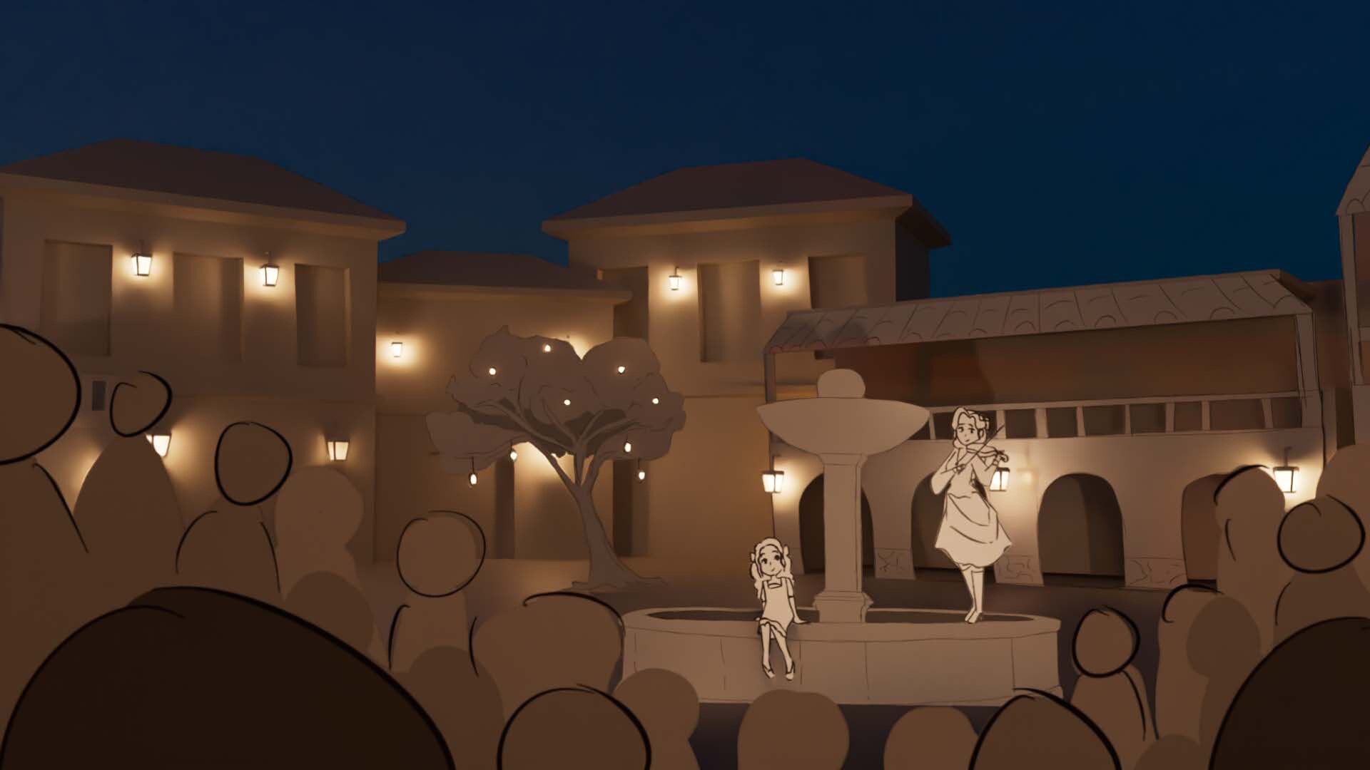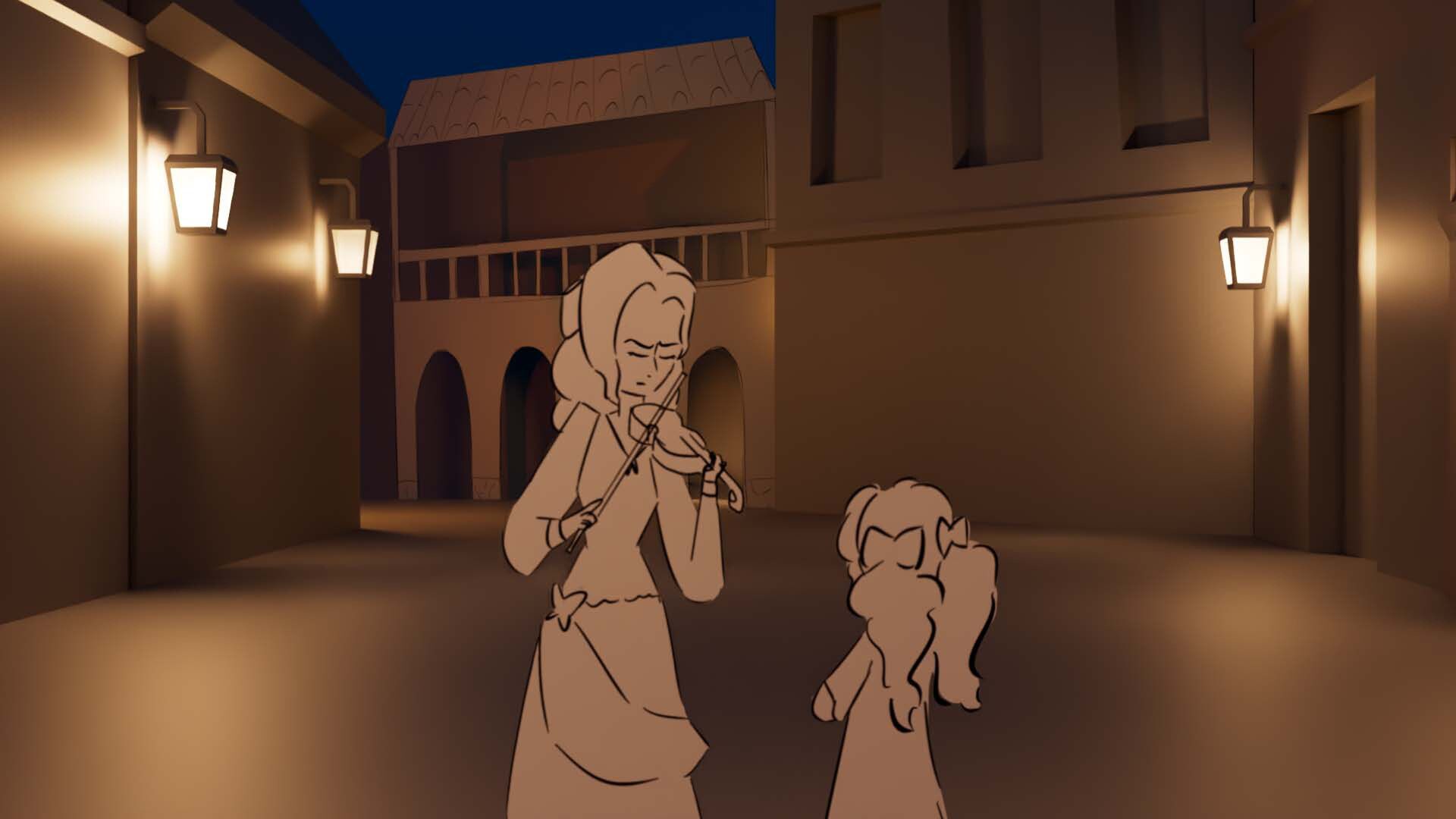 Elena, a musician, is abandoned by the spotlight in the middle of a concert, and is set to chase after it.