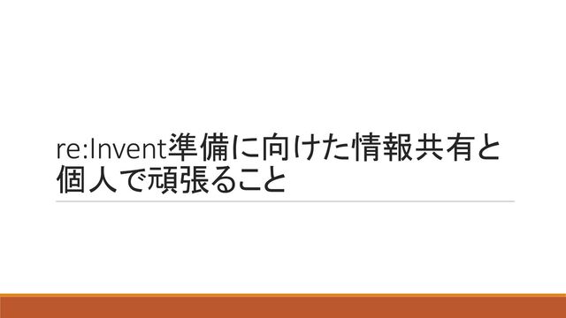 re:Invent準備に向けた情報共有と 個人で頑張ること