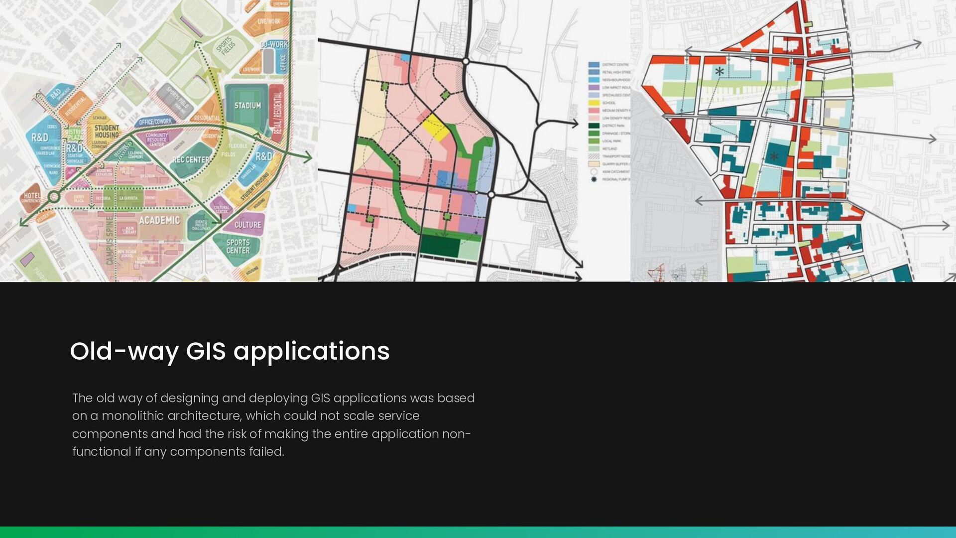 GIS applications was based on a monolithic architecture, which could not scale service components and had the risk of making the entire application non- functional if any components failed.