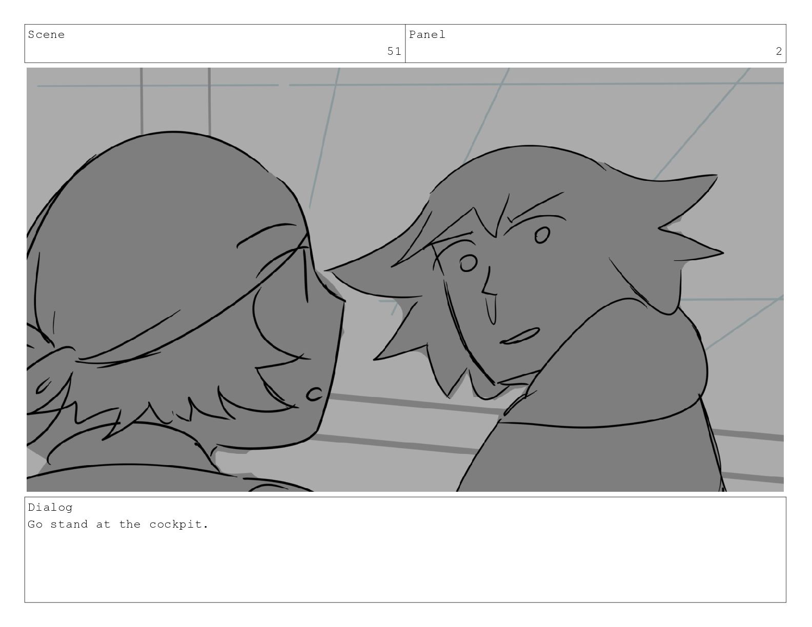 Scene 51 Panel 2 Dialog Go stand at the cockpit.