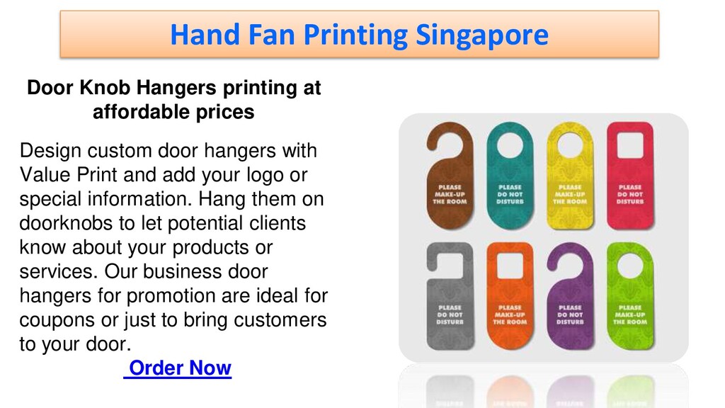 Print and add your logo or special information. Hang them on doorknobs to let potential clients know about your products or services. Our business door hangers for promotion are ideal for coupons or just to bring customers to your door. Order Now Door Knob Hangers printing at affordable prices